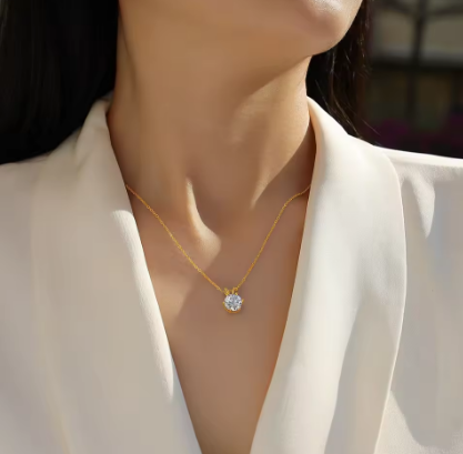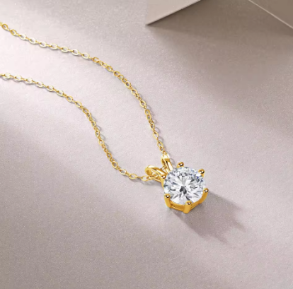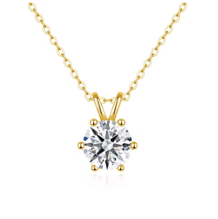 100% Real 14k Gold Pendant Real Gold Women Moissanite Diamond Necklace 6 Prong Wedding Jewelry With Certificate Valentines Gifts
