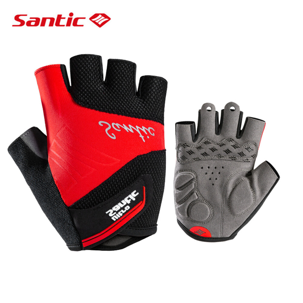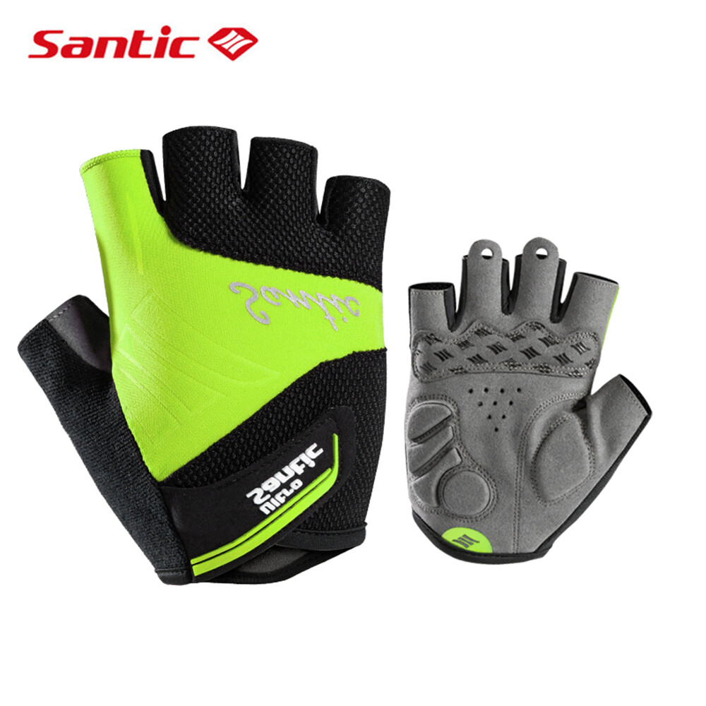 Santic Women Men Cycling Gloves Breathable Non-slip Bicycle Bike Half Finger Gloves