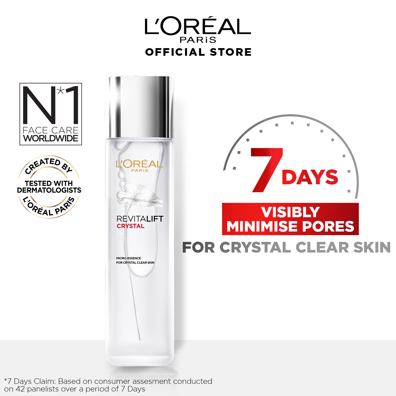 [Bundle of 2] L'Oreal Paris Revitalift 1.5% Hyaluronic Acid Plumping & Hydrating Serum 30ml & Crystal Micro-Essence Water 130ml (Oil Control)