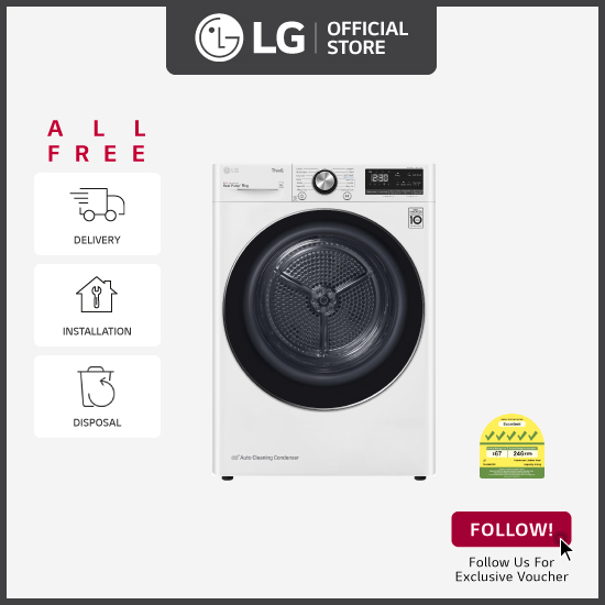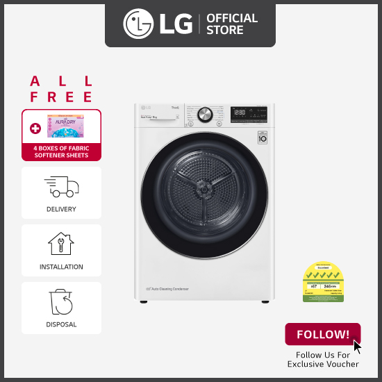 [Bulky] LG TD-H90VWD 9KG, Dual Inverter Heat Pump dryer (White) + Free 4 Boxes of Fabric Softener + Free Delivery + Free Installation + Free Disposal