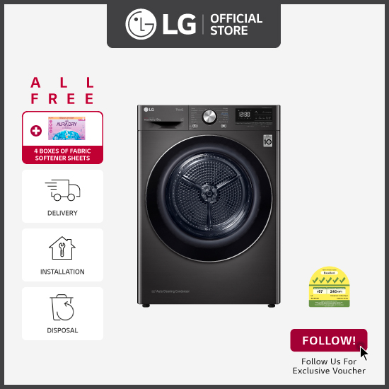[Bulky] LG TD-H90VBD 9KG Dual Inverter Heat Pump dryer (Black) + Free 4 Boxes Of Fabric Softener + Free Delivery + Installation + Free Disposal