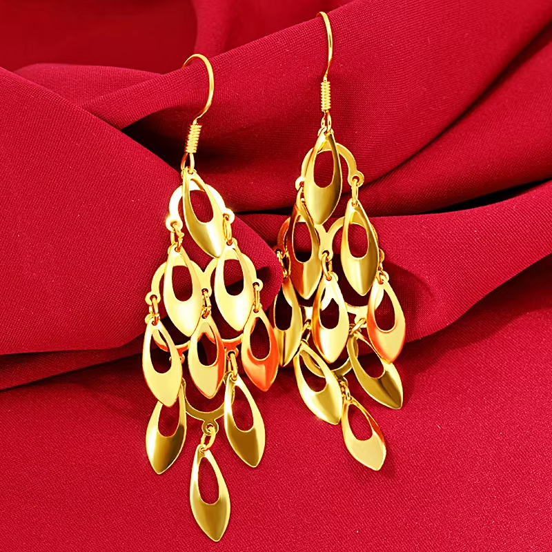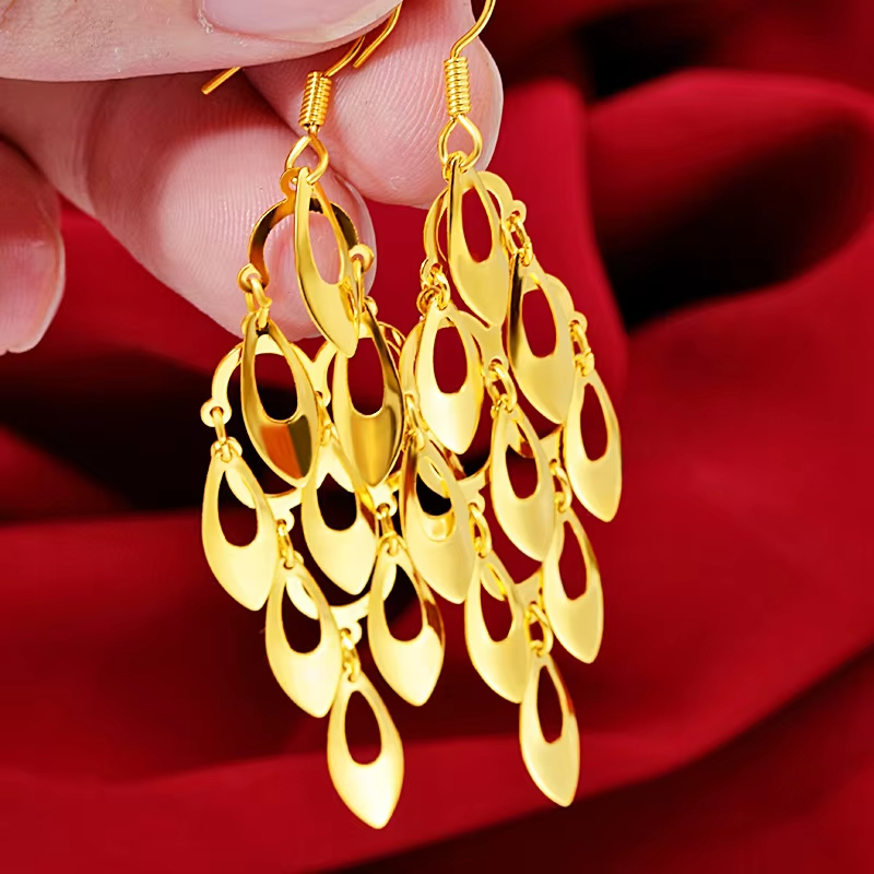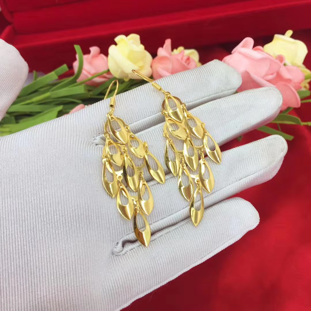 14 K Gold Color Earrings for Women High Quality Woman Fashion Earrings Retro Long Tassel Hollow Earrings