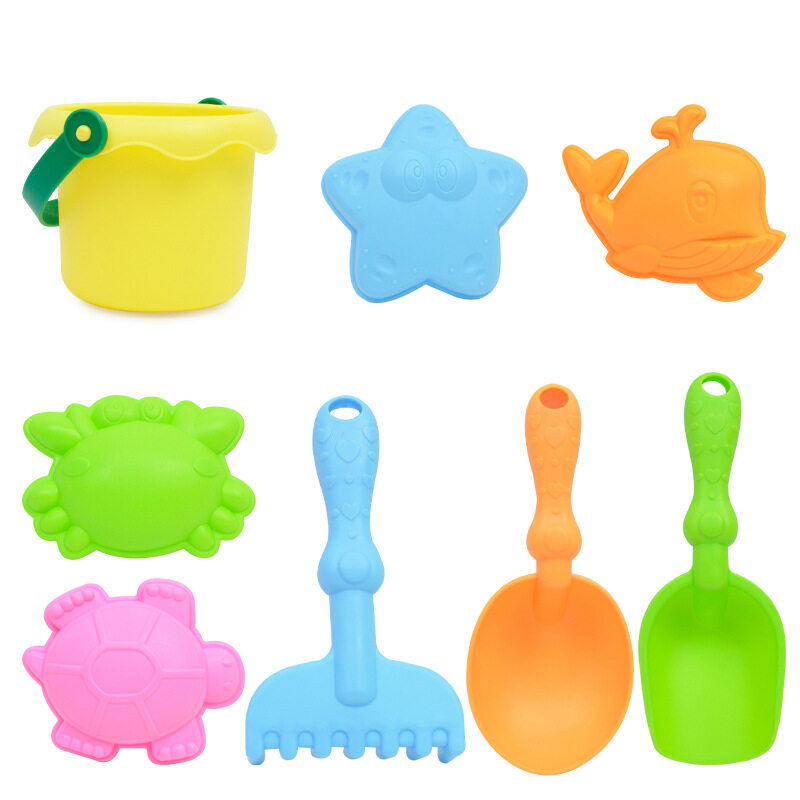 HYG Beach Toys 8pcs Sand Shovel Set 8PCS Beach Sand Toys Set Sand Playing Toys Kids Fun Water Beach Seaside Tools with Watering Can, Sand Molds, Bucket, Sand Shovel Tool Kits for Toddlers Kids Outdoor