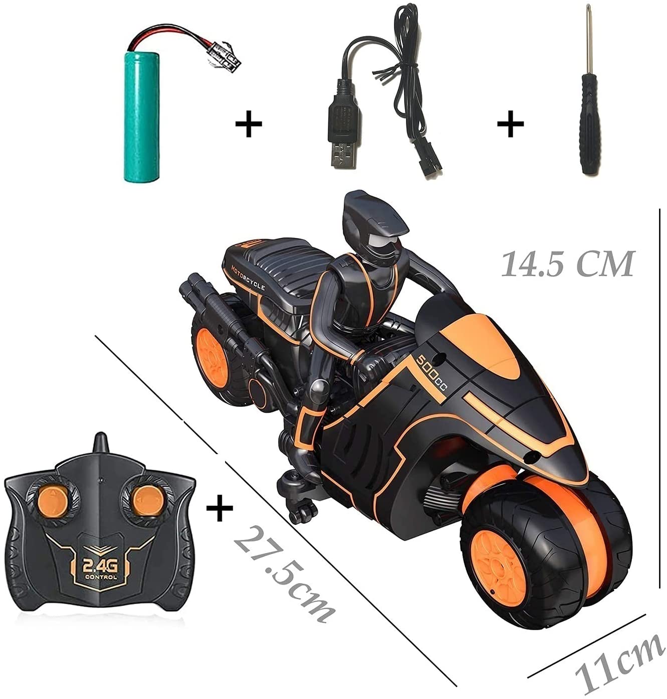 *This rc motorcycle is operated by moving the remote control back and forth, and it can also be rotated left and right.