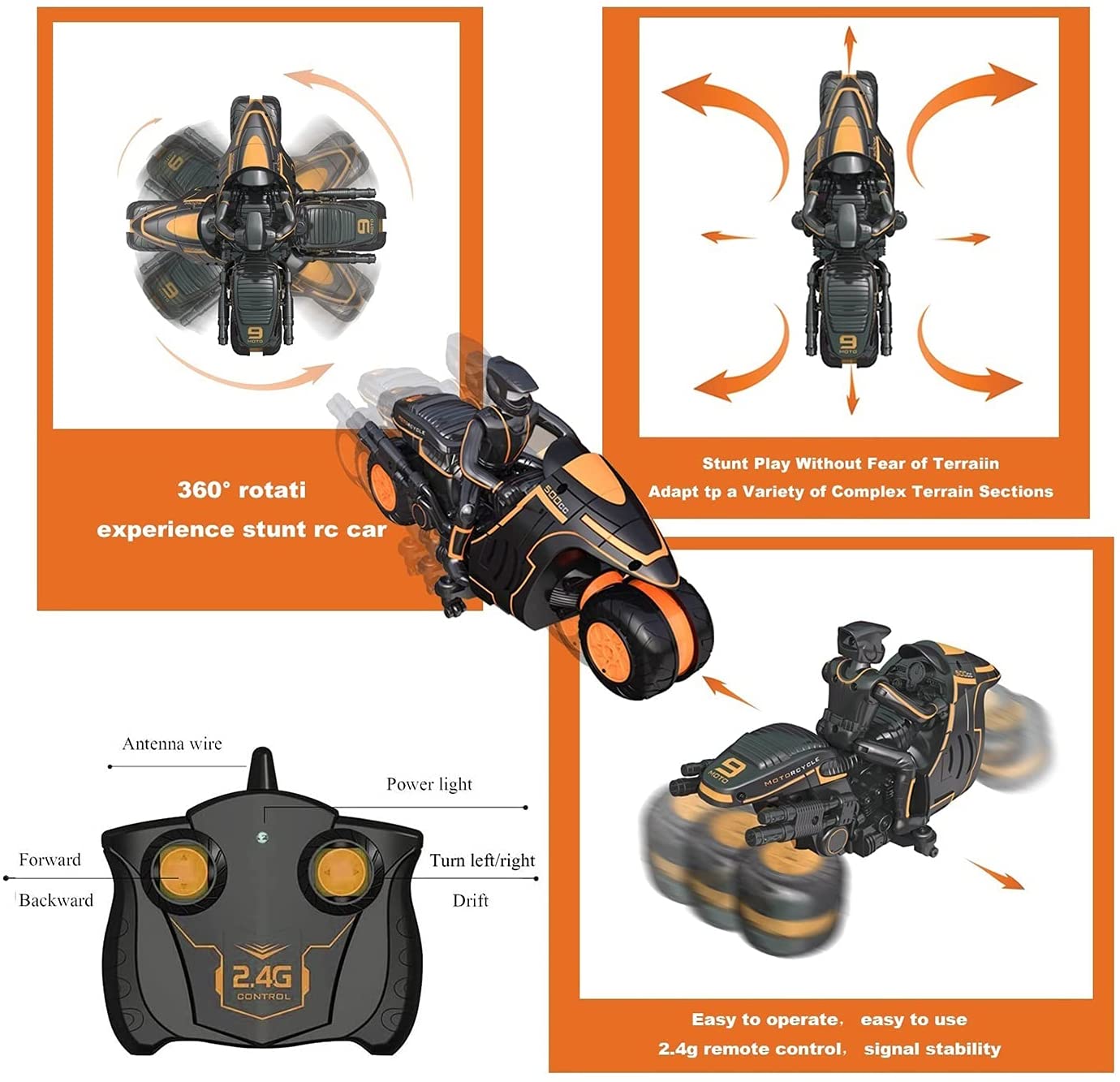 *Rc Motorcycle toy using 2.4GHz remote control design, super easy to control, the farthest control distance can be up to 3000cm/30m