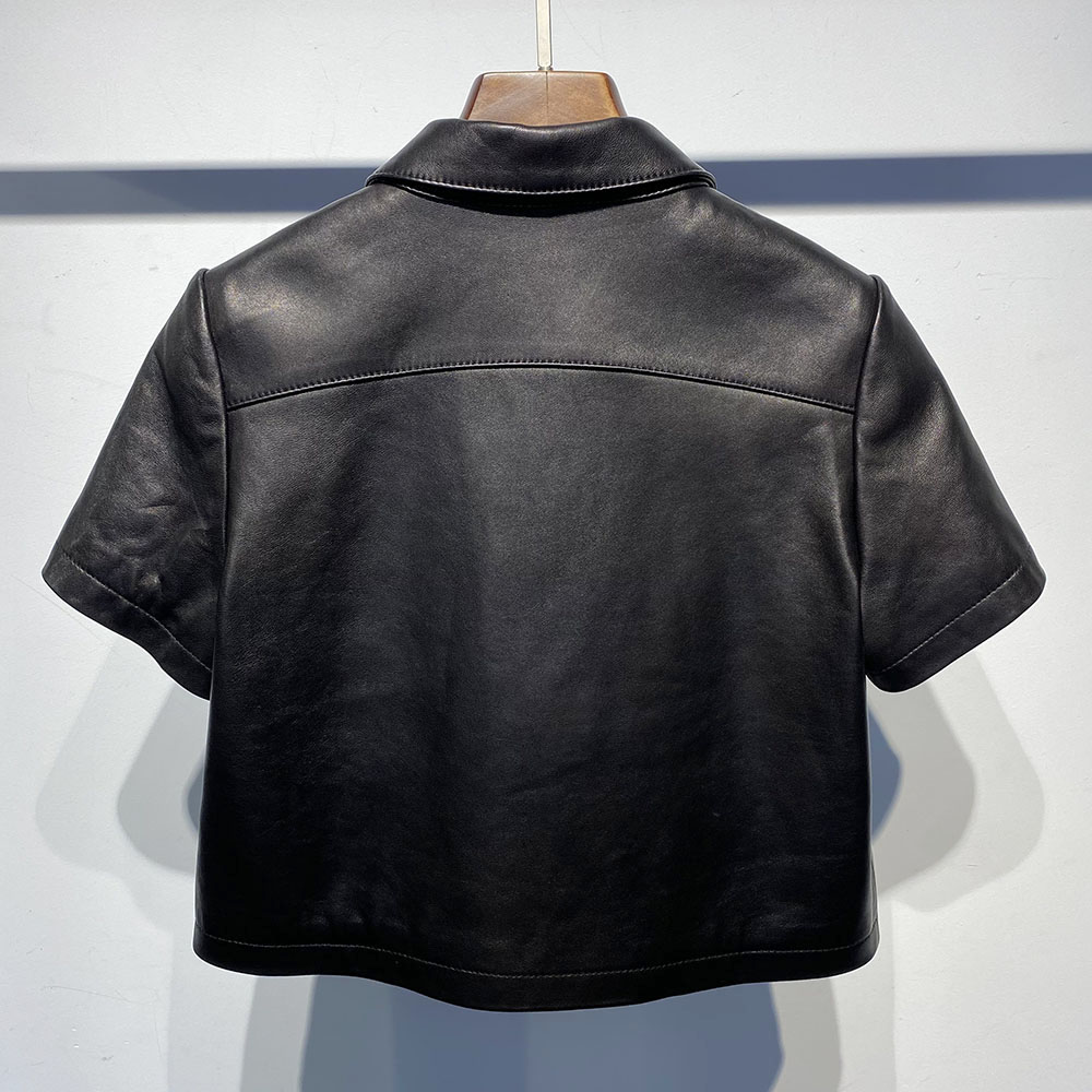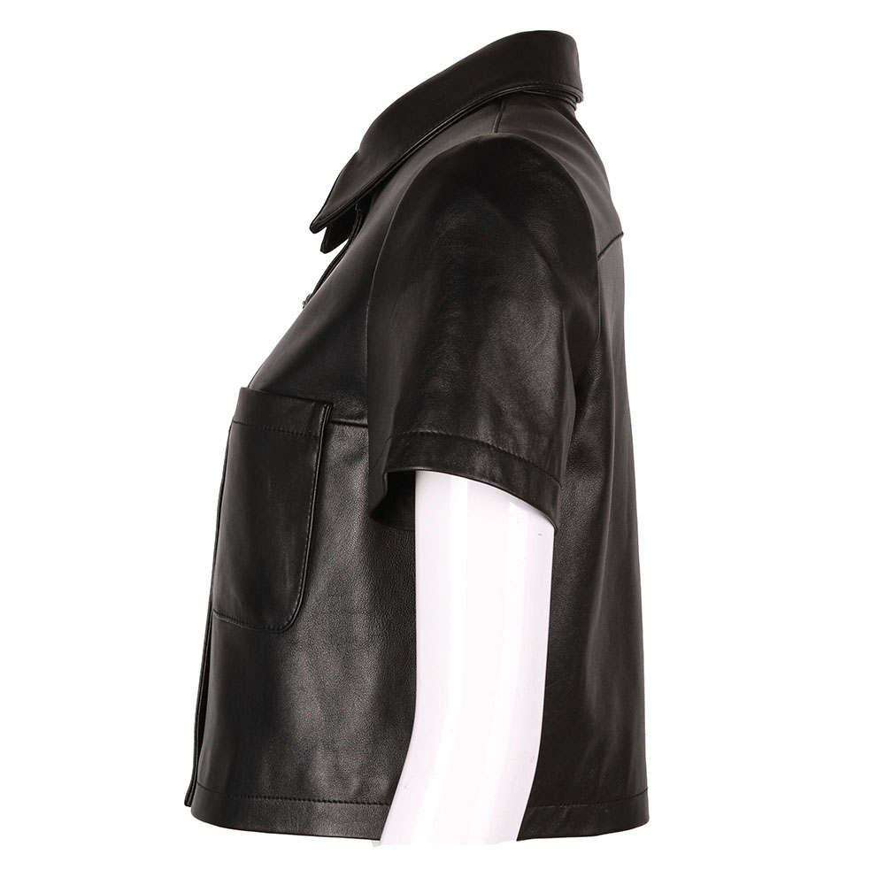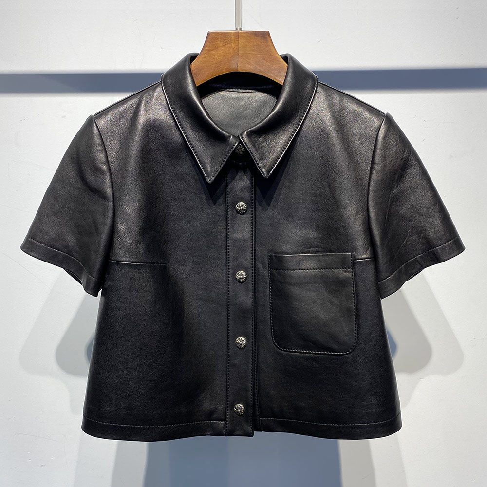 Short Sleeve Single Breasted Short Real Leather Jacket Shirt Women 2022 Autumn New