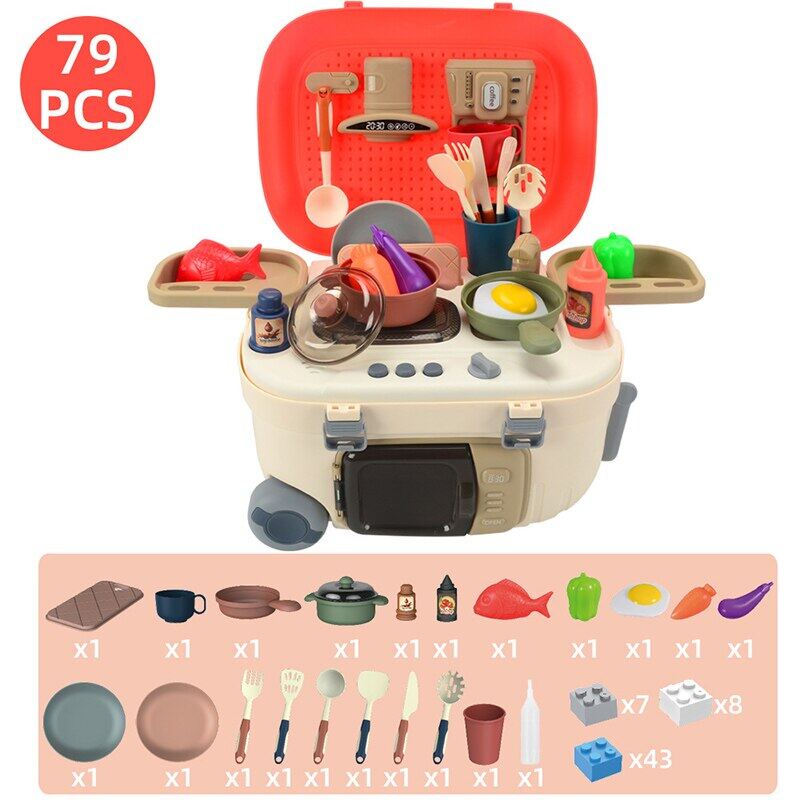 HYG Kitchen Toys Cooking Toys 79PCS Children's Kitchen Toys Baby Family Spray Kitchen Suitcase Storage Kitchen Toys Small Kitchen Toy Set Simulation Spray Toys Sink Running Water and Other Kitchen Acc