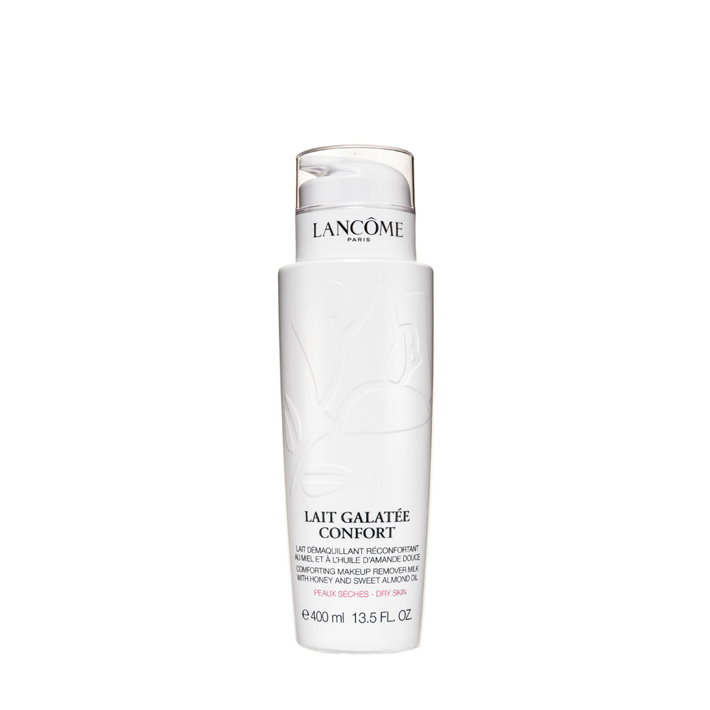 Lancôme Galatée Confort (50ml) Enriched with botanical ingredients to gently remove makeup and residues while replenishing moisture and nourishing skin, specifically suitable for dry skin. Skin is softened and smoothed from a comfortable cleansing experience.Product Features:• Nourishing: botanical essence including honey, almond and more moisturises and nourishes skin, alleviating dryness and tightening pores. Skin appears energised and cleansed.• Gentle cleansing: it removes makeup and dirt, while balancing water and oil level, replenishing and locking in moisture for increasing elasticity.• Silky-smooth texture: it mildly emulsifies and cleanses face, providing a comfortable cleansing experience.Ingredients:• Honey, Almond: Moisturize and tighten pores