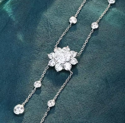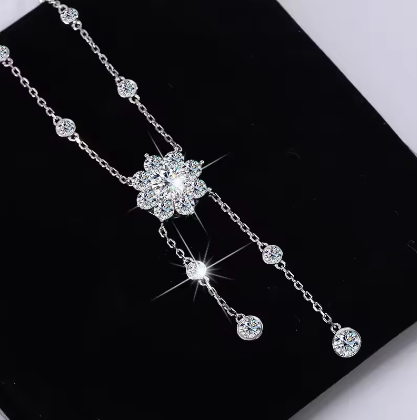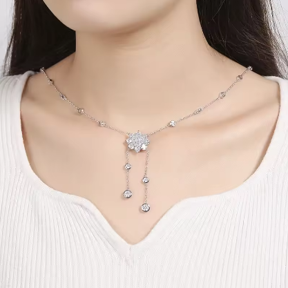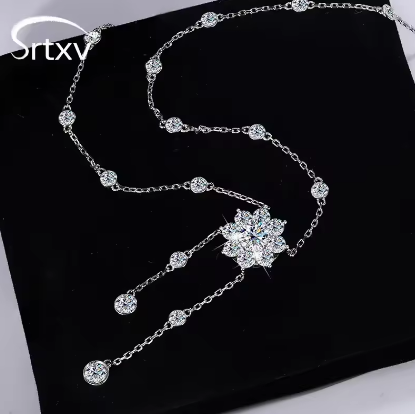 1CT D Color Moissanite Bubble Necklace for Women S925 Sterling Silver Sunflower Diamond Tassel Neck Chain Wedding Party Gift GRA
