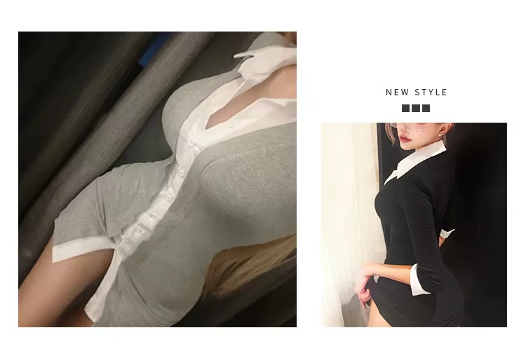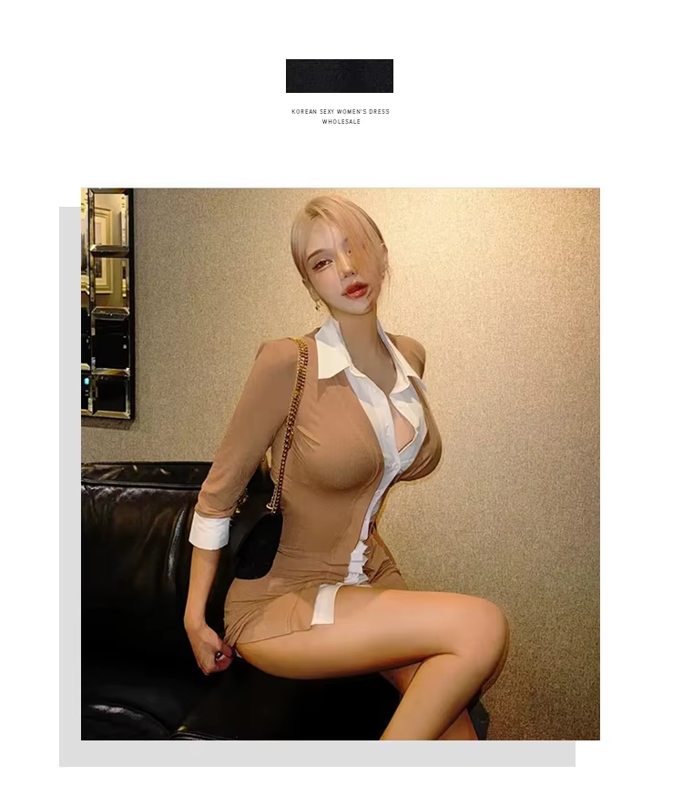 2024 Autumn/winter Korean Version New Polo Lapel Single Breasted Fake Two Piece Color Blocked Wrap Hip Short Sleeve Dress NKJI