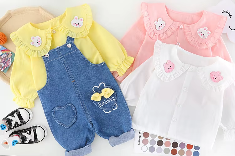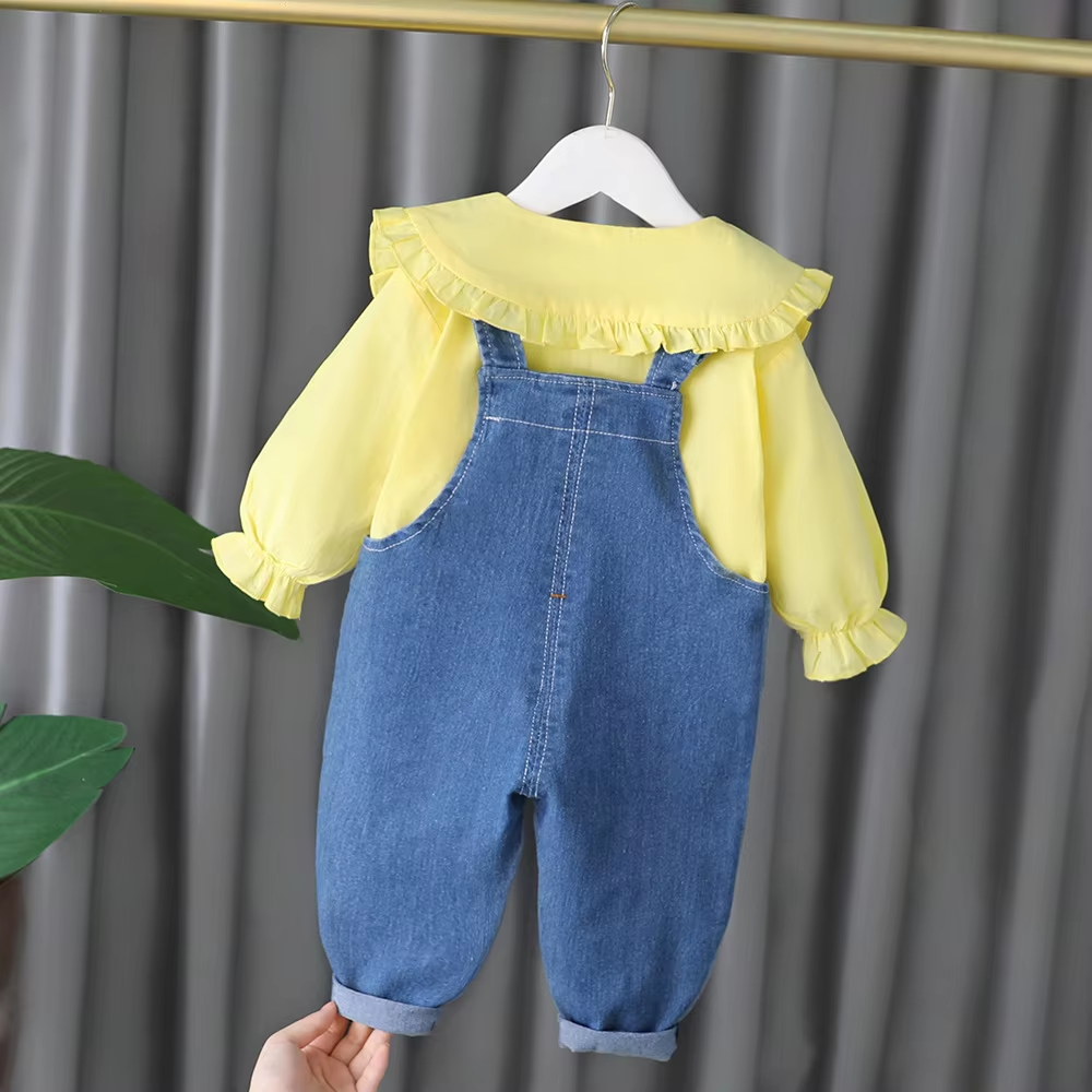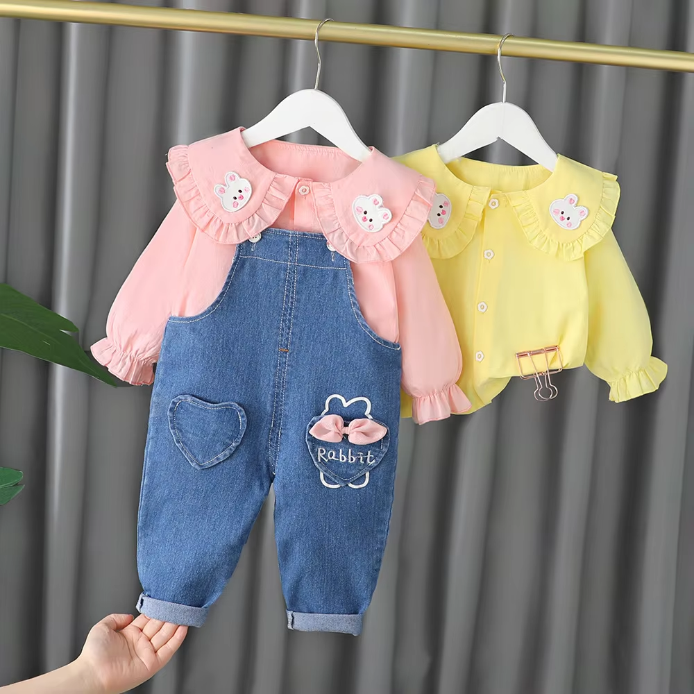 2024 kids Clothing Set cute girls 0-4year Long Sleeve Shirt+Denim overalls Outfit For Newborn Baby Girl clothes set