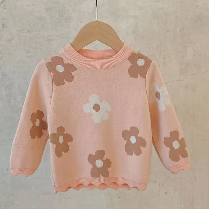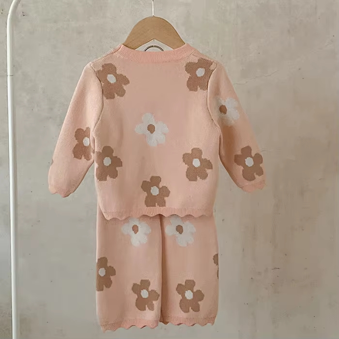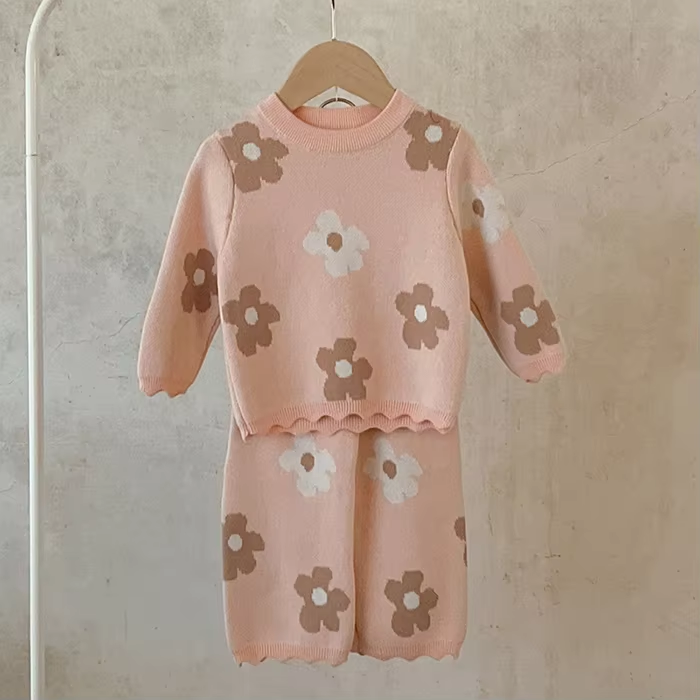 2024 New Autumn Infant Baby Girls Knitted Clothing Set Long Sleeved Cotton Printed Sweater+Pants Children Knitted Clothes Suit