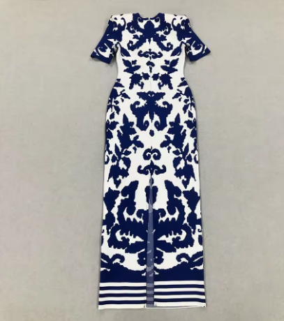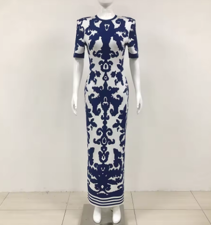 2024 Spring/Summer New Sexy Round Neck Short Sleeve Printed Bandage Dress Women's Elegant Celebrity Party Evening Dres