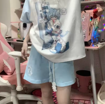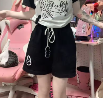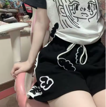 2024 summer new Sweet cute women's patchwork printed Elasticized high waisted drawstring loose casual All-match straight Shorts