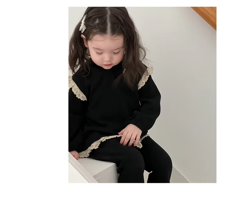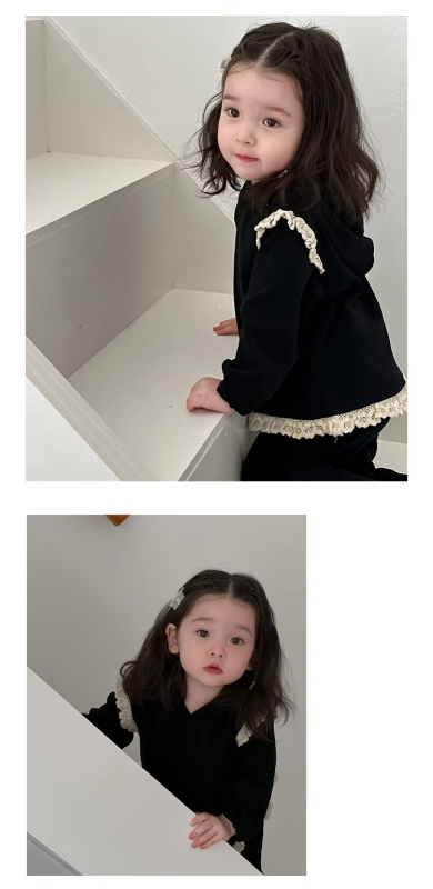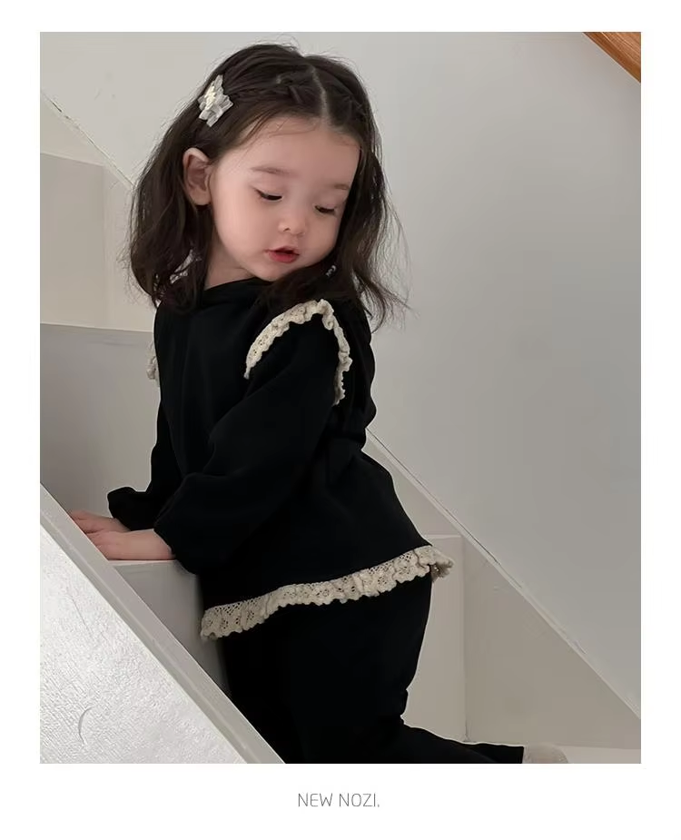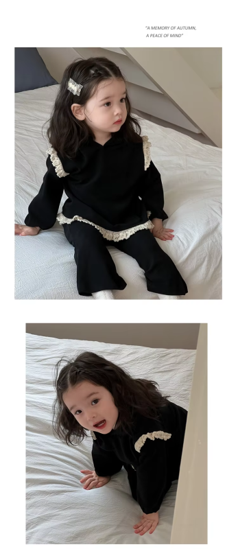2025 Autumn New Baby Long Sleeve Clothes Set Infant Girls Lace Hooded Sweatshirt + Flared Pants 2pcs Suit Toddler Casual Outfits