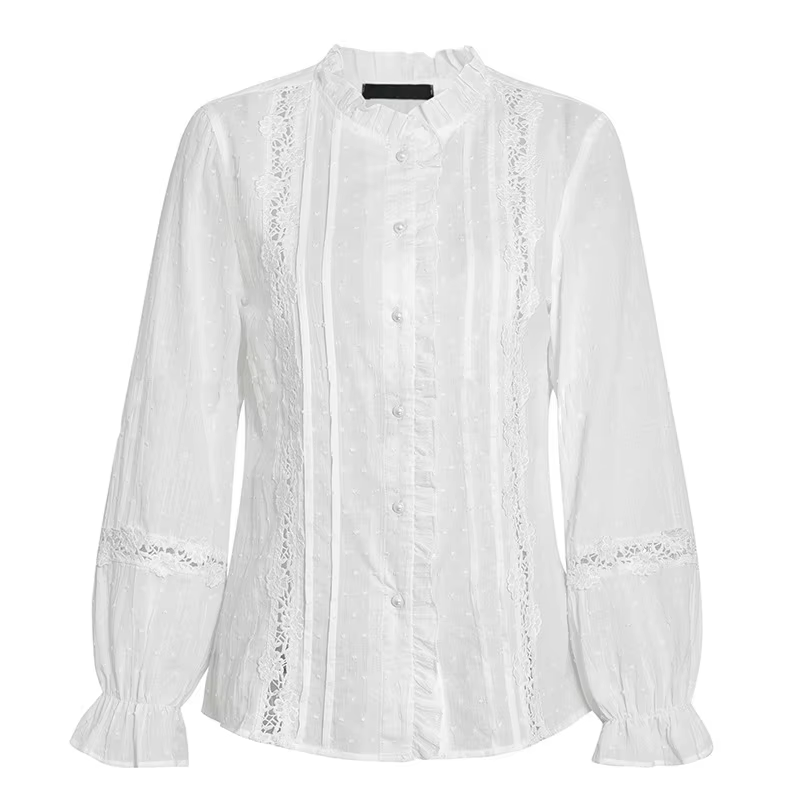 2025 Spring Autumn Women Blouse Fashion Casual Ruffles V Neck Long Sleeve Hollow Out Tops Office Lady Loose Streetwear Shirt