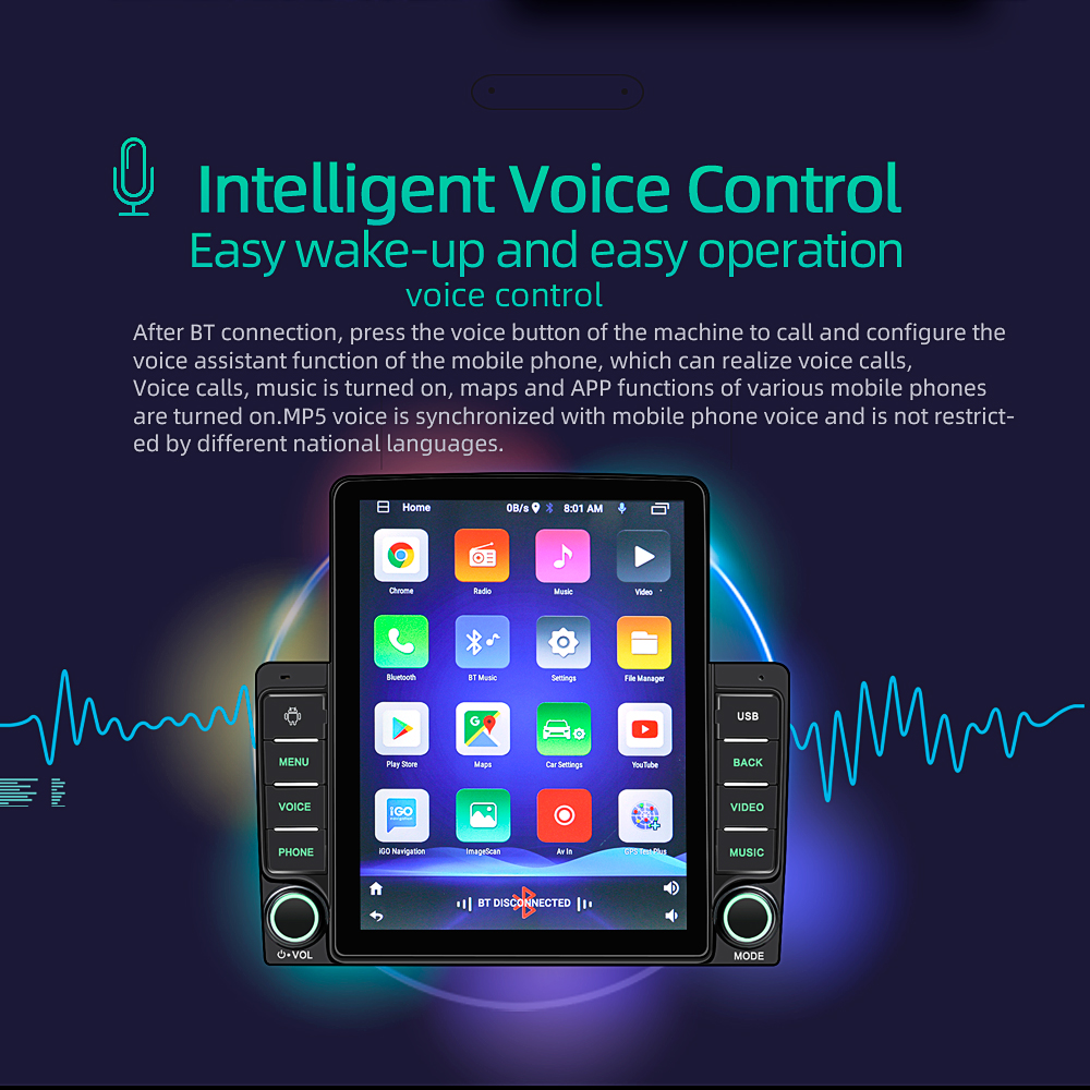 EKLEVA 2 Din 9.5 Inch Car Radio Player Android 10.1 RAM+ROM 1GB+16GB Vertical Screen IPS high definition screen Quad-Core Bluetooth Hands-free 9580A
