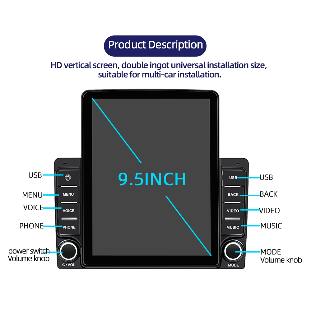 EKLEVA 2 Din 9.5 Inch Car Radio Player Android 11 RAM+ROM 1GB + 16GB Vertical Screen IPS high definition screen Quad-Core Bluetooth Hands-free 9580A