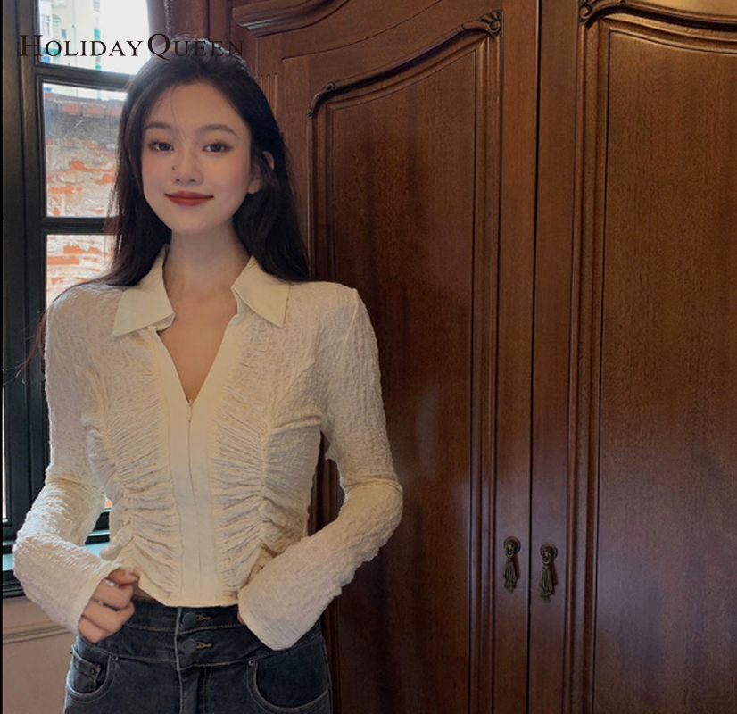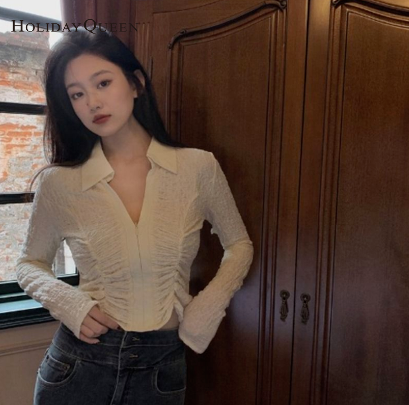 HolidayQueen Fall 2021 Women's Thin V-neck Design Top Shirt S M L XL Free Shipping HQP0589