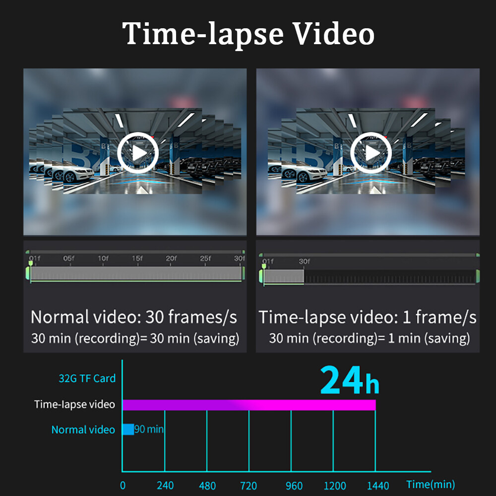 24H ParkingMonitor If the DVR be shocked by any external forces like a thief while parking, its Parking Mode function will turn on to record automatically(Need to buy Hardware Kit)