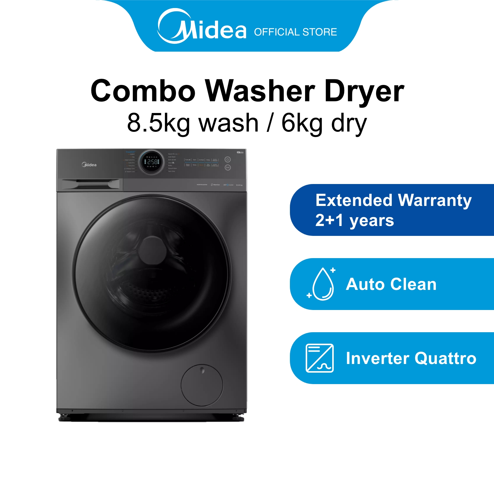 [Bulky] Midea MF200D85B Dark Grey Washer-Dryer Combo, 8.5kg, Water Efficiency 4 Ticks