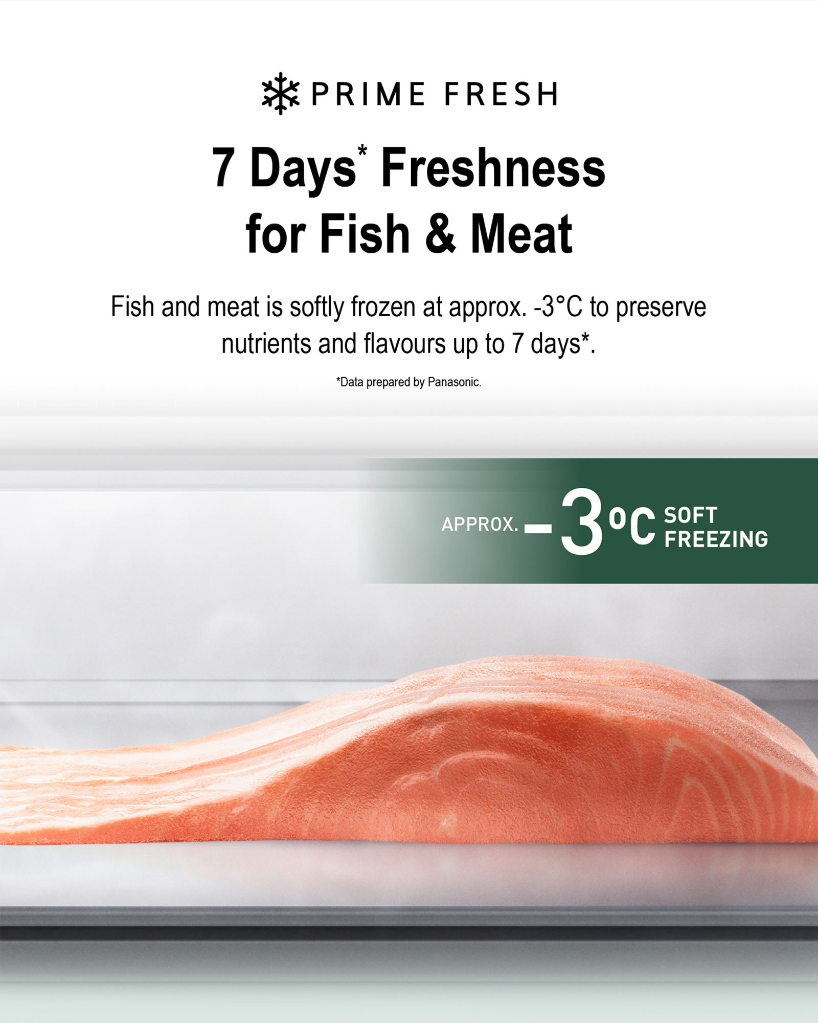 7 days* freshness for fish & meat - Prime Fresh