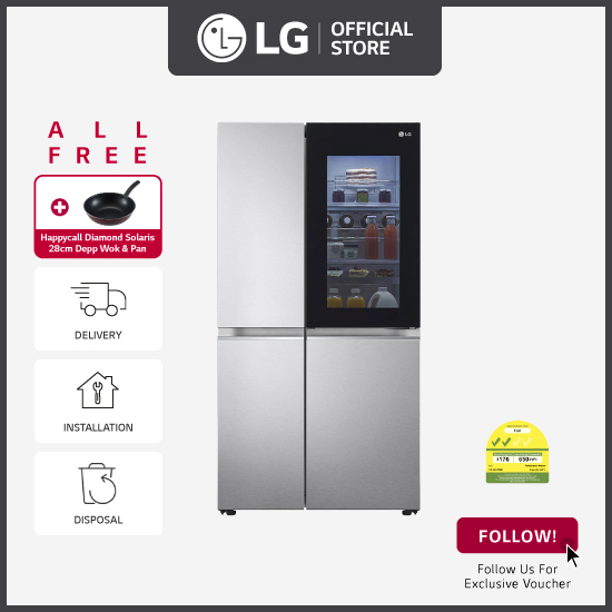 [Bulky] LG GS-Q6472NS side-by-side-fridge with InstaView Door-in-Door™, 647L, New Noble Steel + Free Delivery + Free Installation + Free Disposal + Free Happycall Diamond Solaris I.H.28cm Depp Wok &