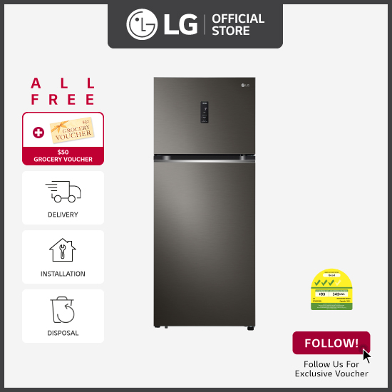 [Pre-Order] [Bulky] LG GT-B3952BL Top Freezer Refrigerator with Inverter Compressor, 395L, Black Steel + Free $50 Grocery Voucher + Free Delivery + Free Installation + Free Disposal [Ship from 5 May]