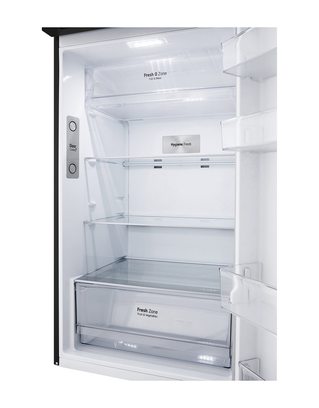 • Door Cooling+™ - Delivers Freshness. Evenly & Faster. Food stays fresh and drinks get ice cold on any shelf with even and faster cooling performance