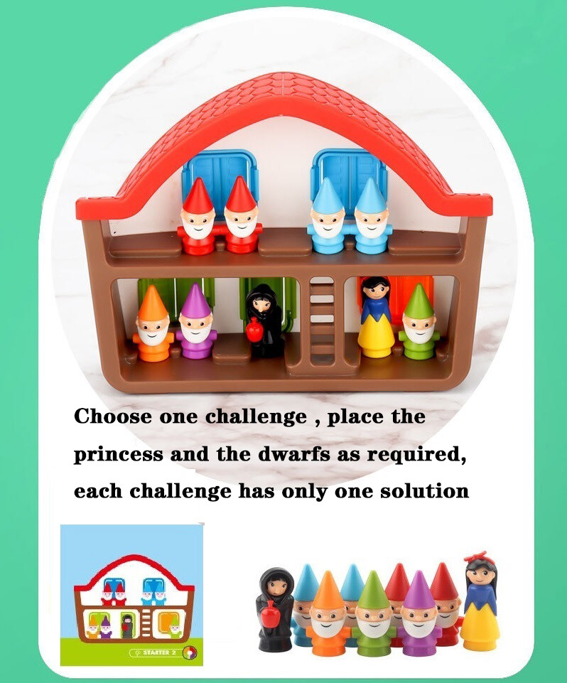 The object of the game is to correctly place Snow White, the Seven Dwarfs and the Evil Queen inside the 3D House based on a series of rules and clues in each challenge. Solving Snow White challenges helps develop early deductive reasoning skills.