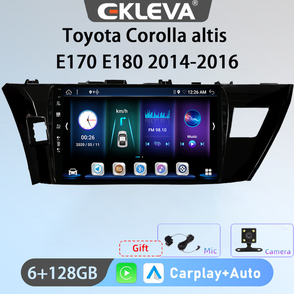 EKLEVA 2 din Android Auto Radio for Toyota Corolla altis E170 E180 2014-2016 Carplay Car Multimedia Head Unit 2din GPS 4G Free Gift Rear Camera and Microphone