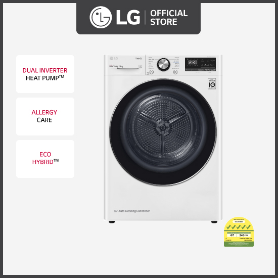 [Bulky] LG FV1409S3W 9KG AI Direct Drive Front Load Washing Machine + LG TD-H90VWD 9KG, Dual Inverter Heat Pump dryer (White)
