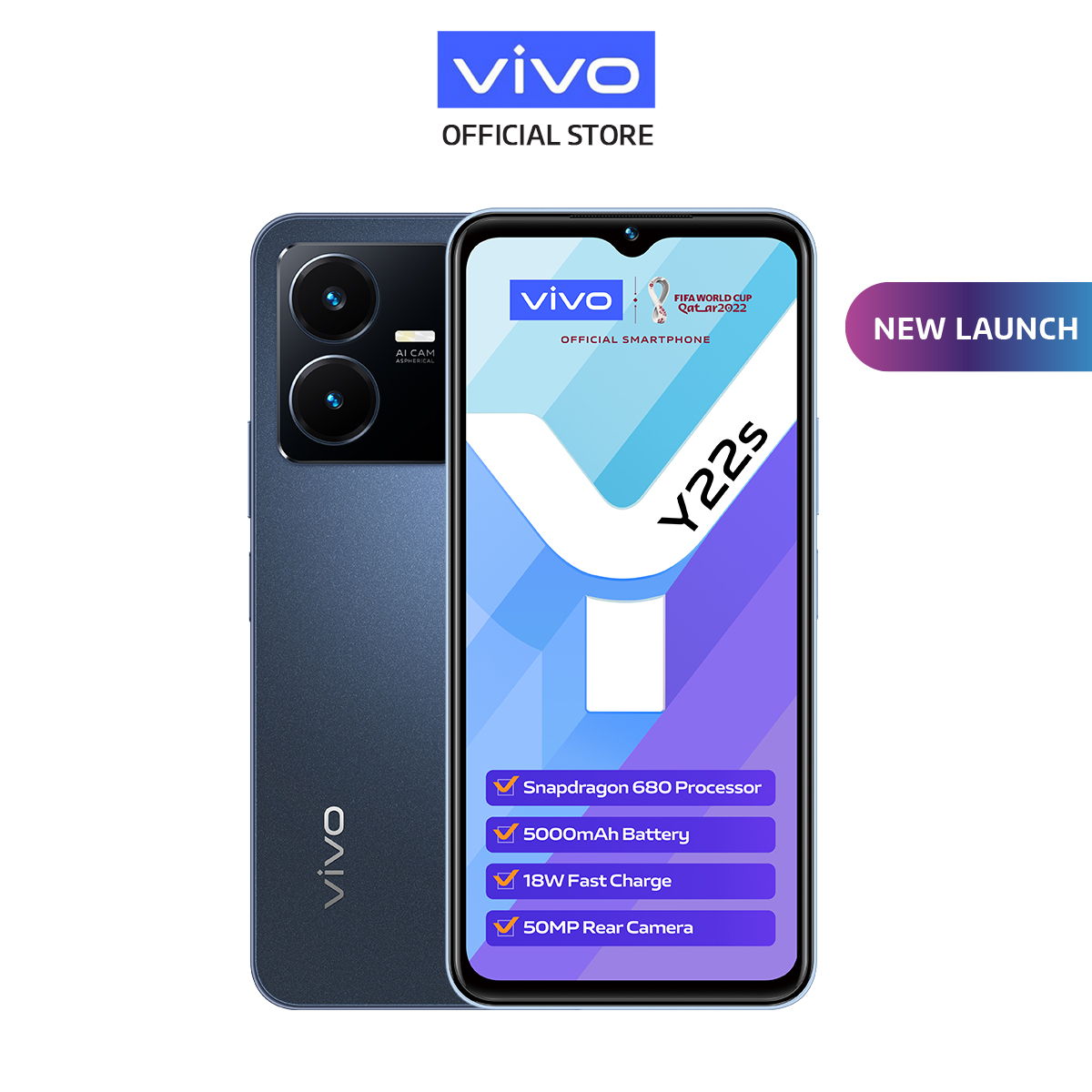 vivo Y22s [6GB + 6GB Extended RAM] / 5000mAH + 18W Fast Charge / 50MP Rear Camera
