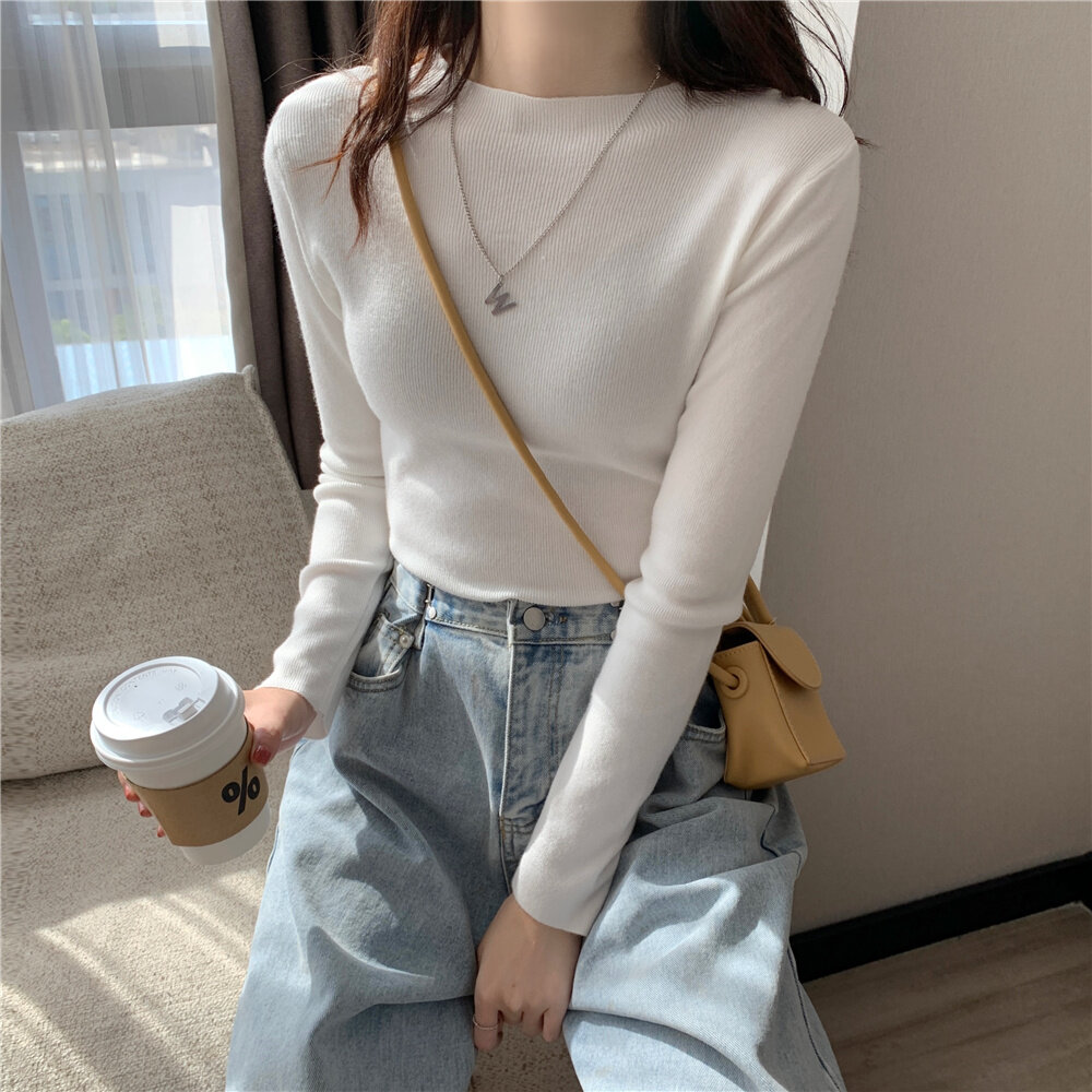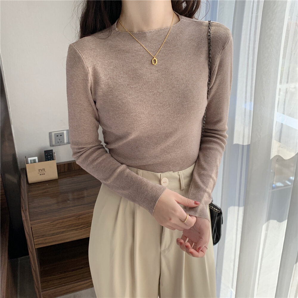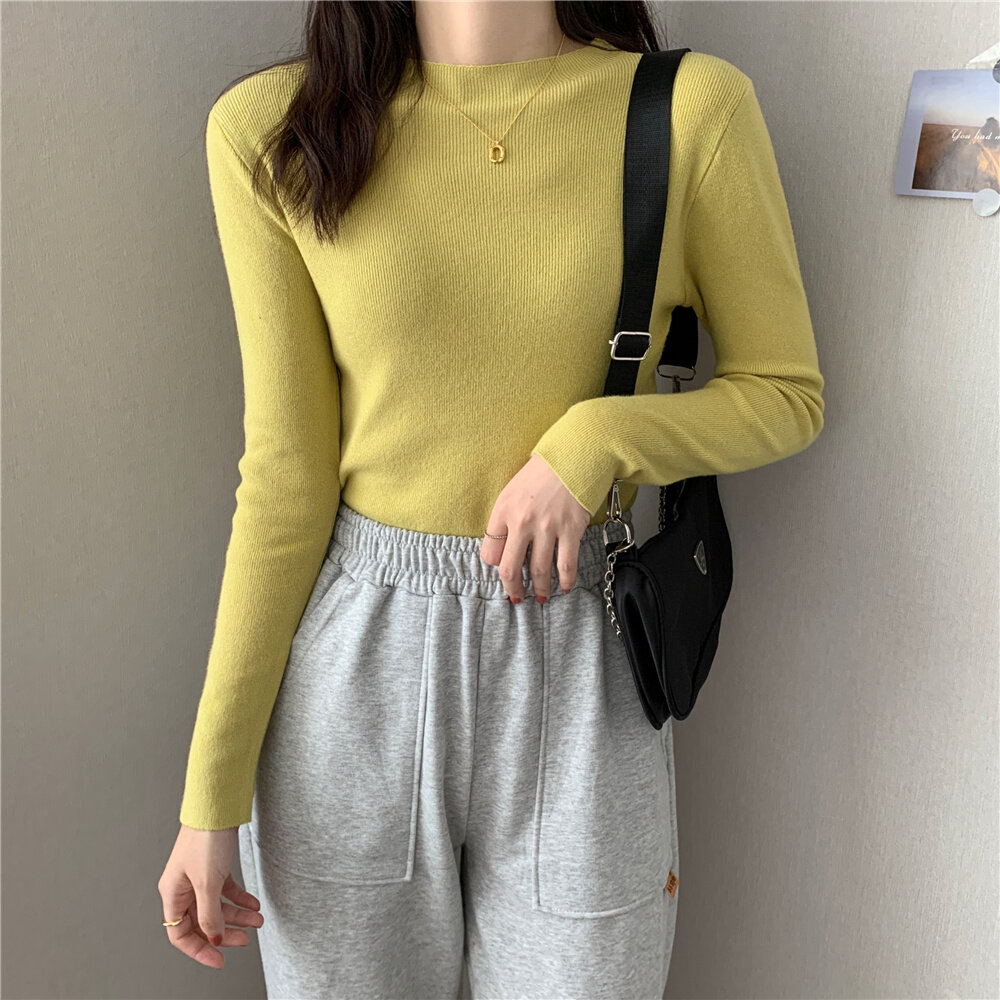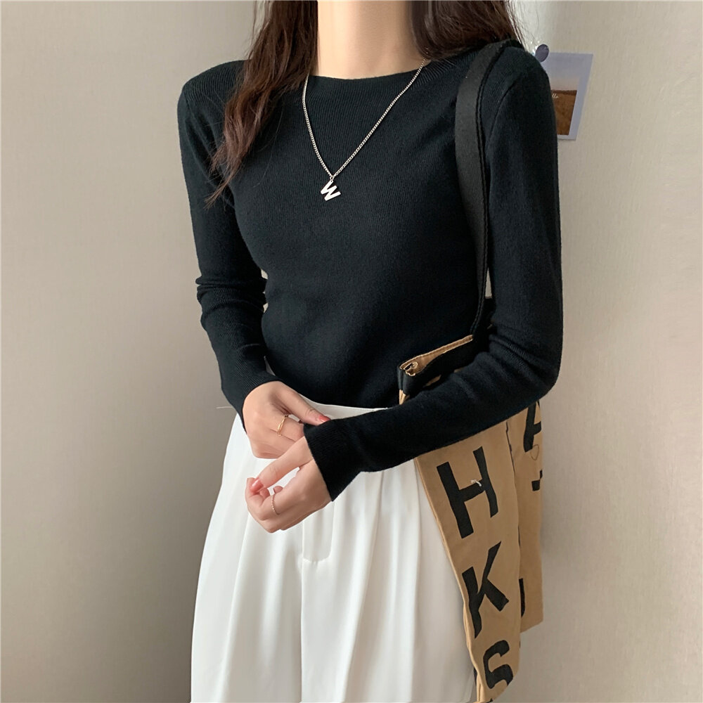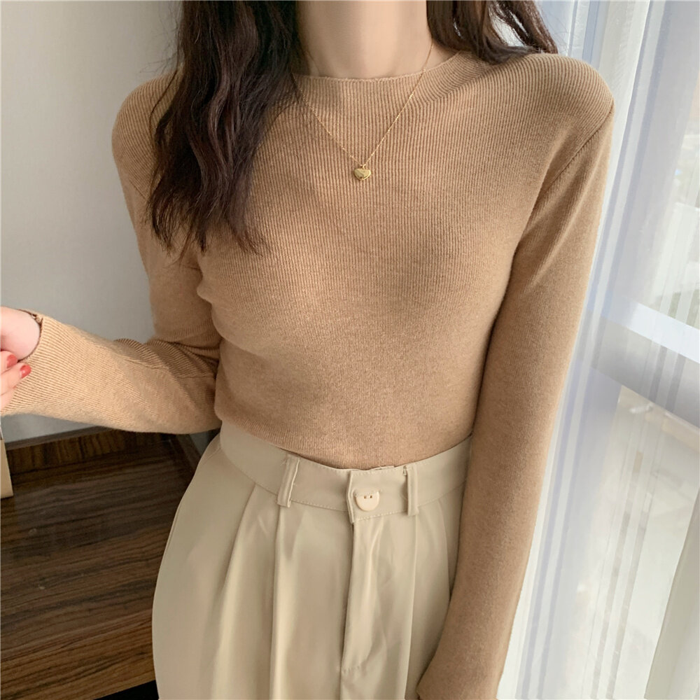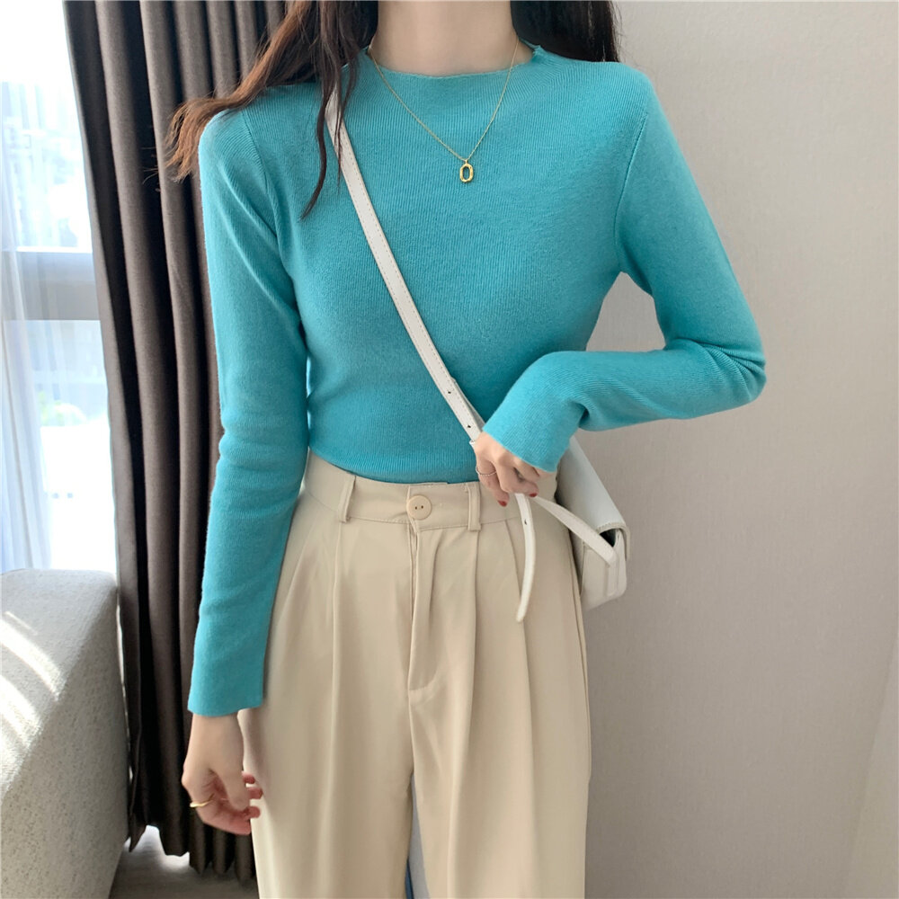 HolidayQueen 2022 Fall/Winter Full Color Basics All-match Solid Color Top Knit Sweater 15 Colors Free Shipping HQ1778