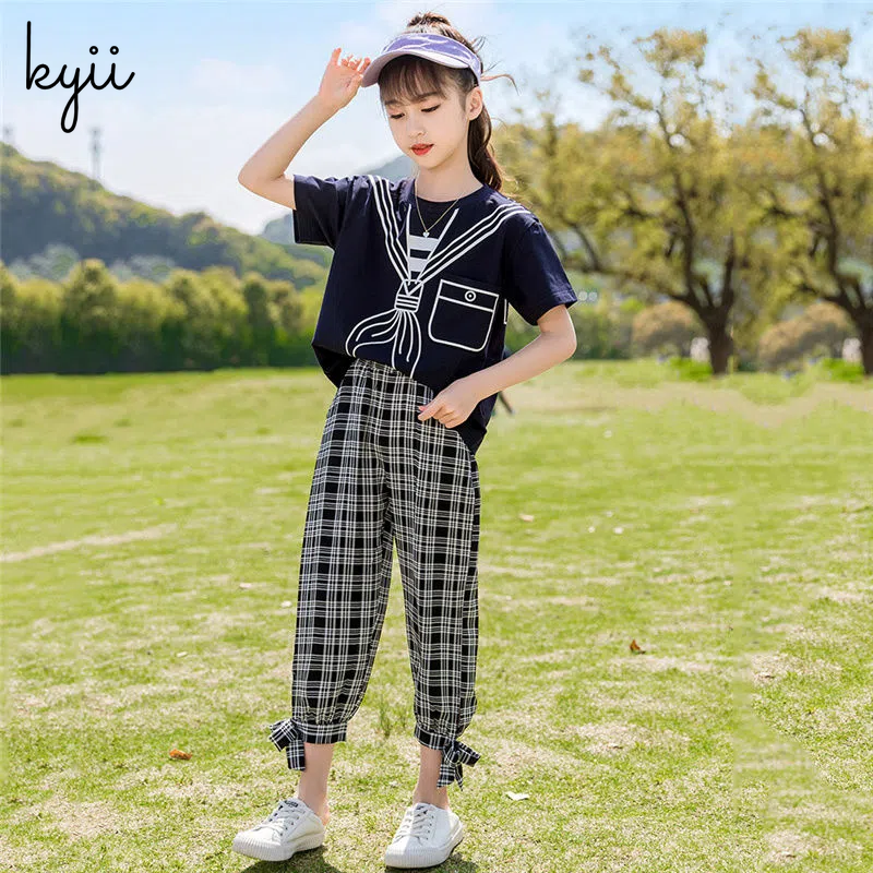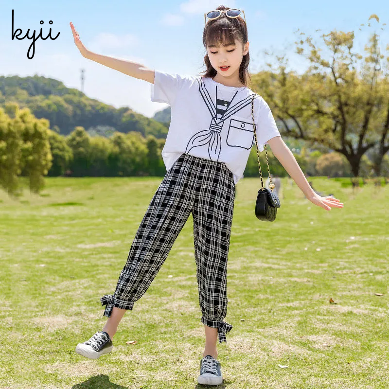 KYII Girls set two-piece Short Sleeve top children Set ky22272