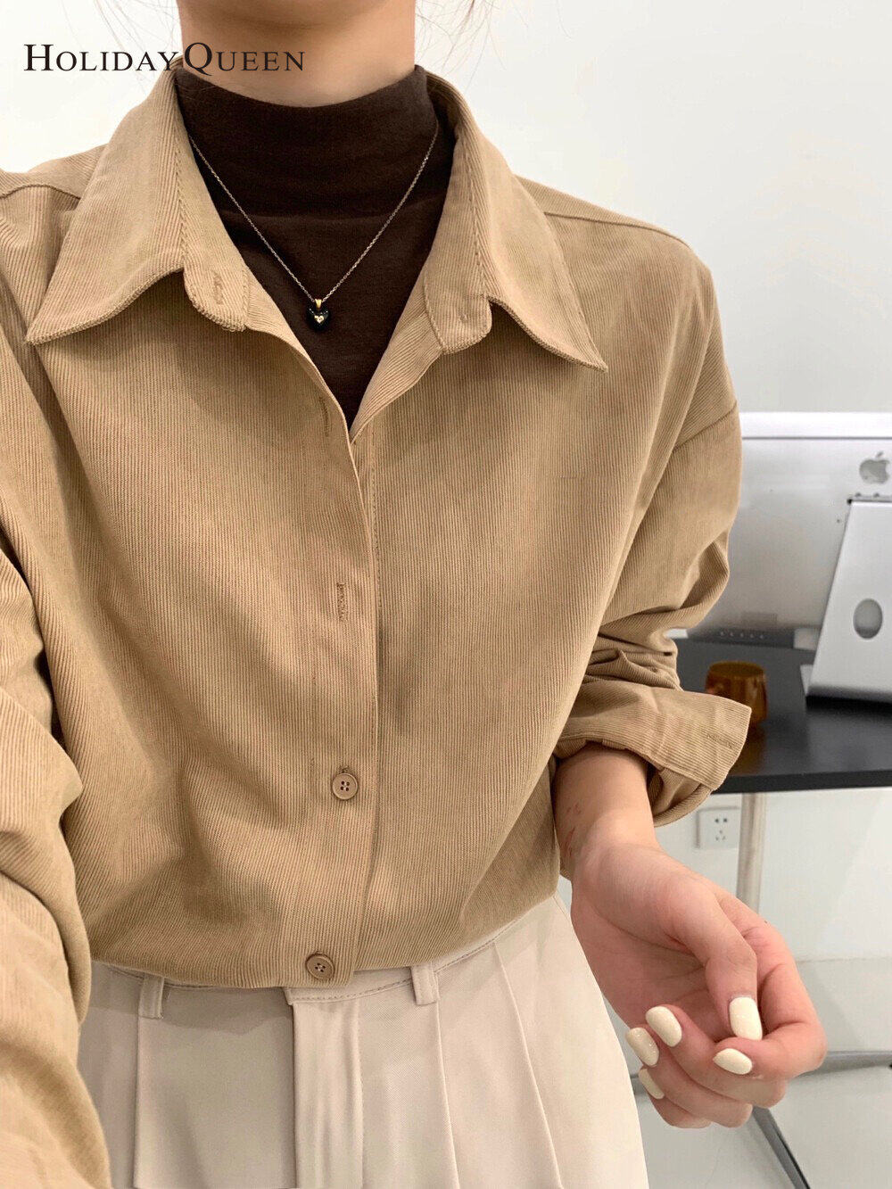HolidayQueen Korean Edition Fall/Winter 2022 New Corduroy Thick Long-sleeved Shirt Stacked Shirt Tops Free Shipping HQ1854