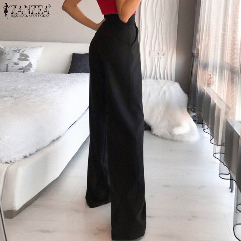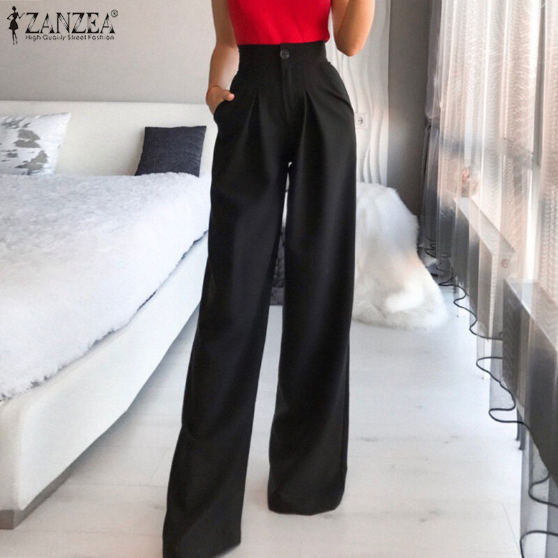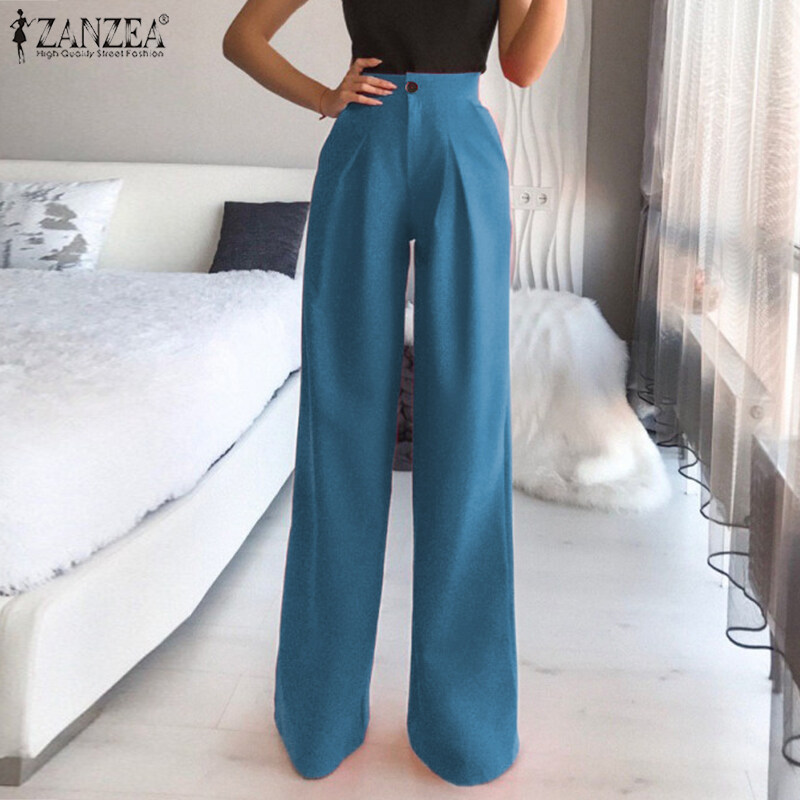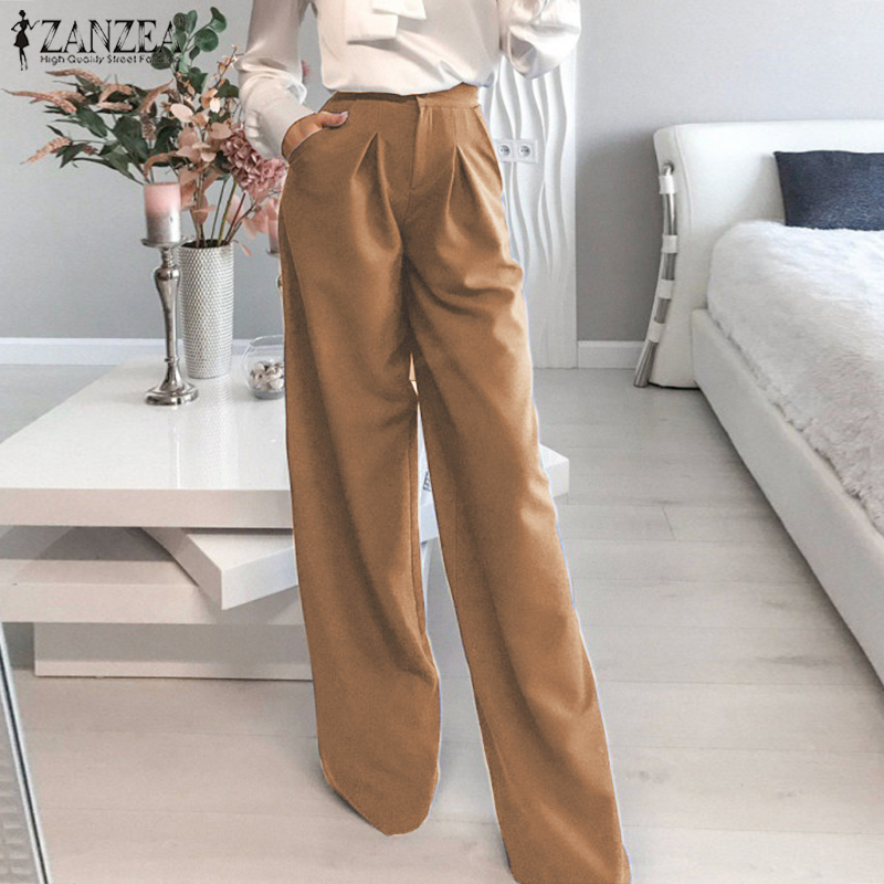 ZANZEA Women Stylish Versatile Solid Straight Pants Formal Casual Pleated Commute Trousers #15