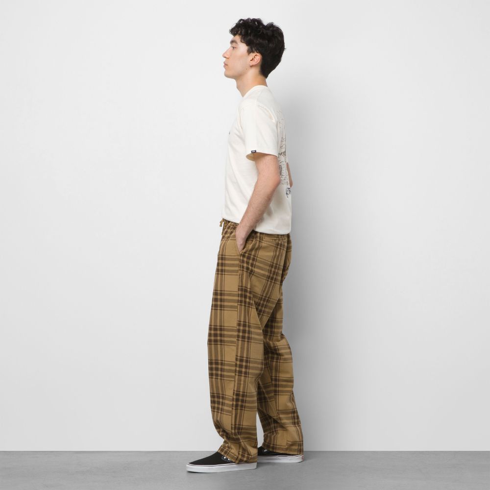Vans Range Plaid Baggy Tapered Elastic Waist Pant Men BROWN VN0005XYZ1G1