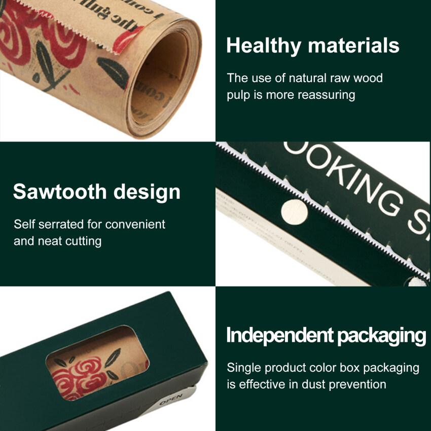 1.Our baking paper has many kinds of advantages, such as oil-proof, waterproof, non-stick, heat-resistance, food grade and eco-friendly. It is ideal for frying, baking, roasting and grilling. In addition, it will not affect the taste of your food.
