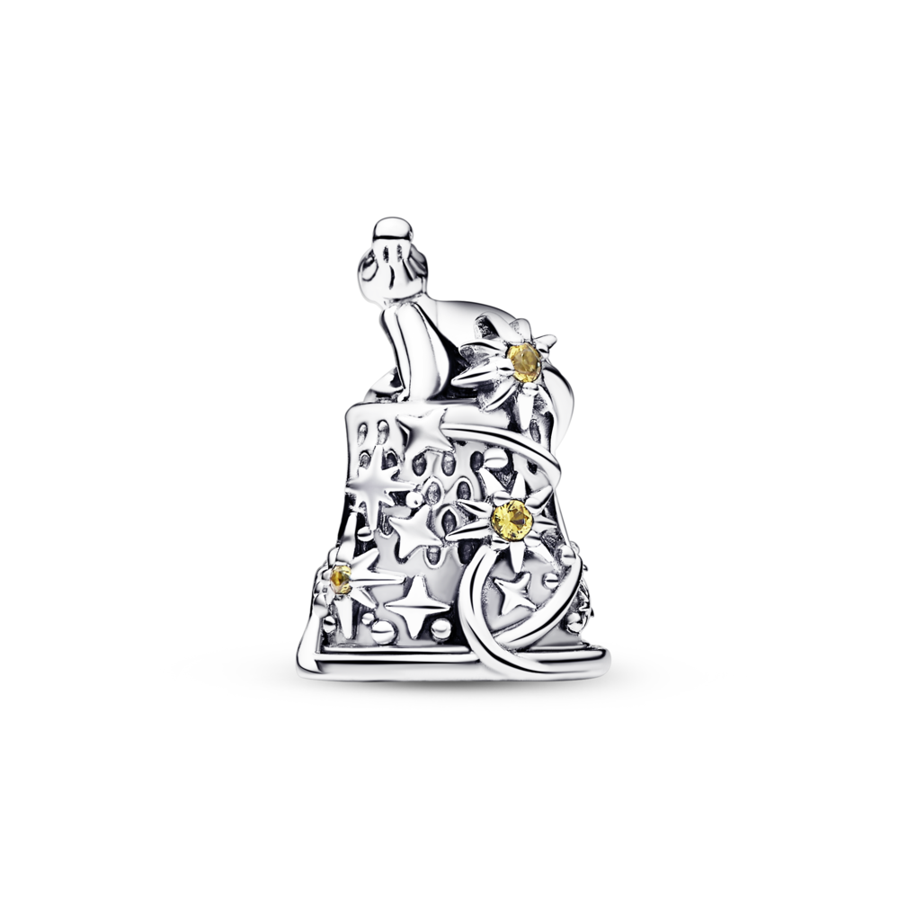 Every day needs a little bit of pixie dust. This sterling silver charm sets a magical scene with hand-applied green enamel details and brilliant-cut blazing yellow man-made crystals. Style it with other green and yellow charms for a nostalgic tribute to Tinker Bell and your childhood memories.