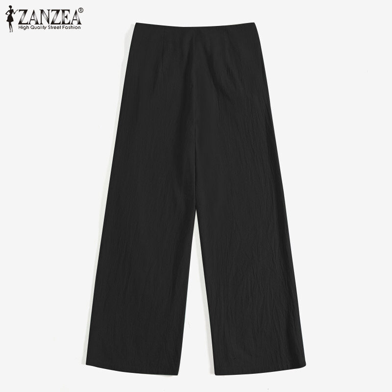 ZANZEA Women Vintage Cotton Side Pockets Trousers Casual Loose Plain Front Zipper Straight Pants #2