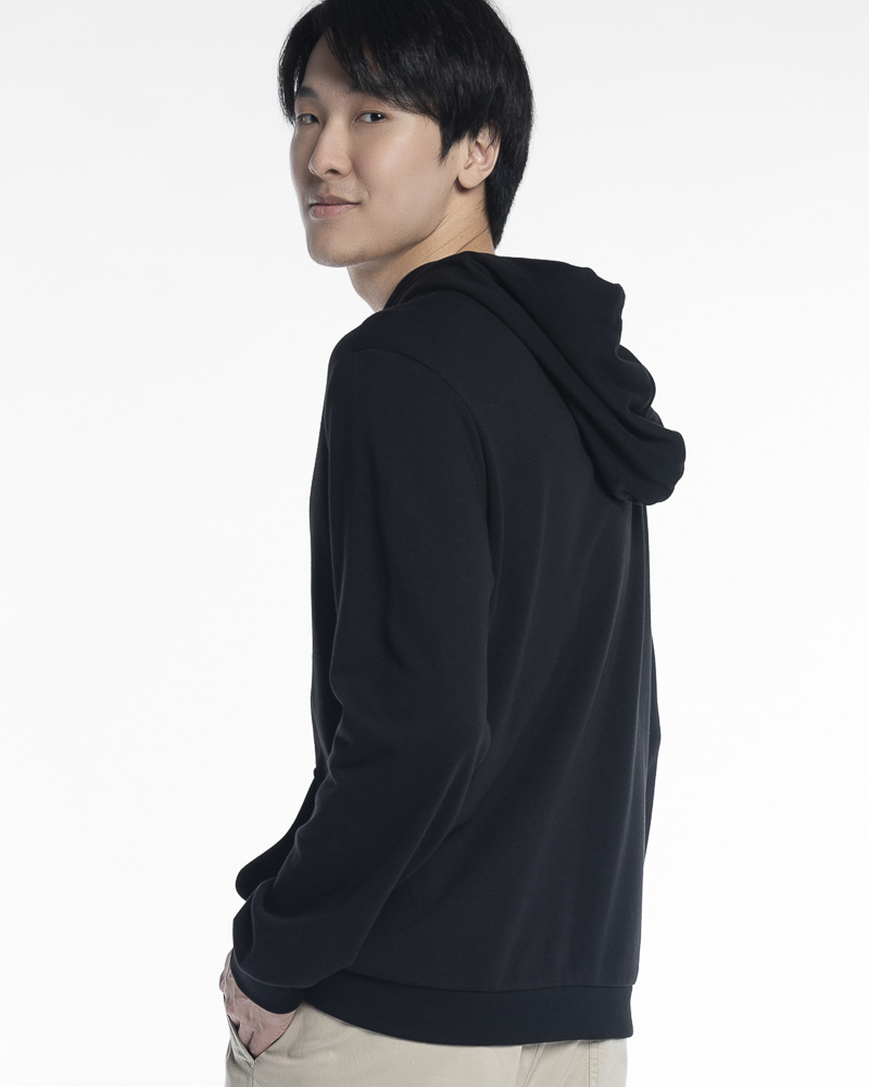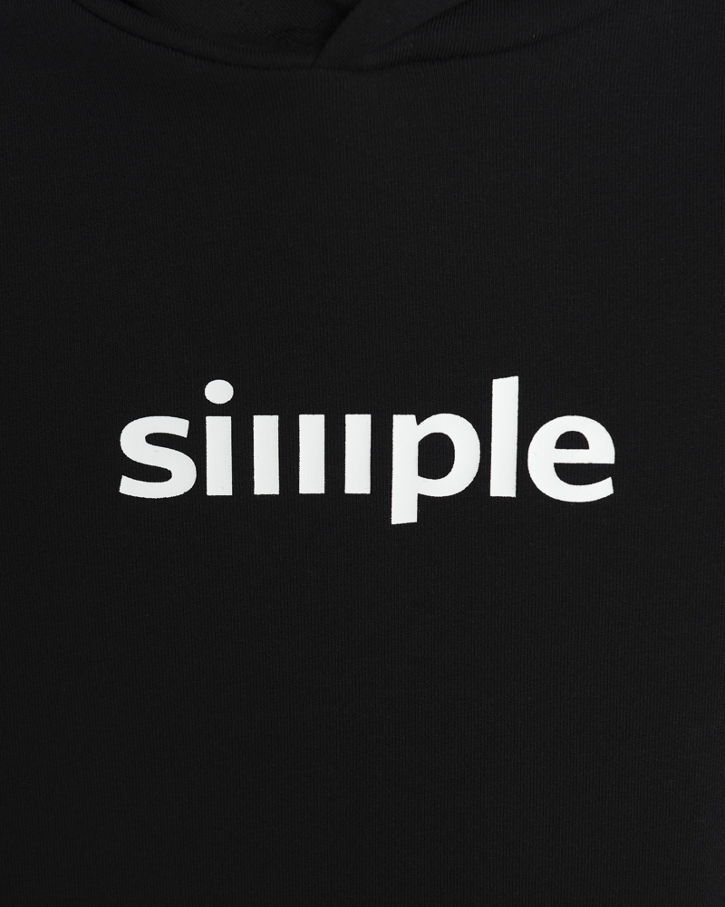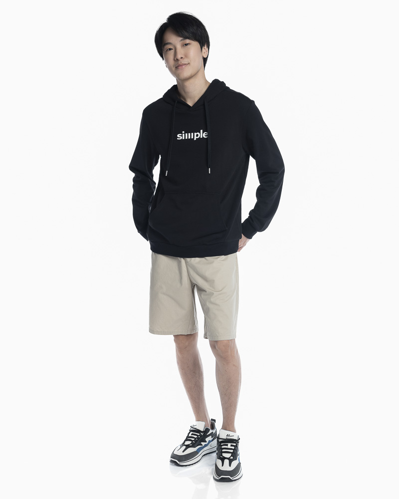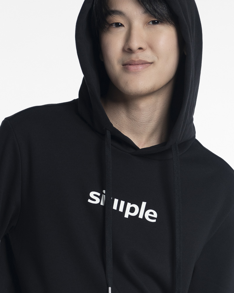 Yishion Men Solid Colour Pullover Hoodie with Kangaroo Pockets and SIMPLE Slogan Patch (Black)