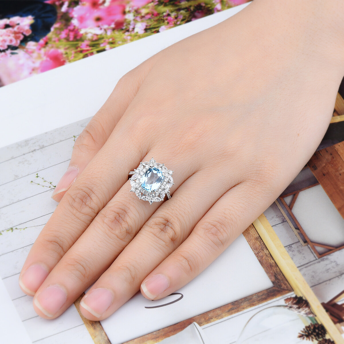 4.3 Carats Ring Silver 925 Original Natural Sky Blue Topaz Light Blue Gemstone Topaz Ring For Lady Jewelry Anniversary Gift