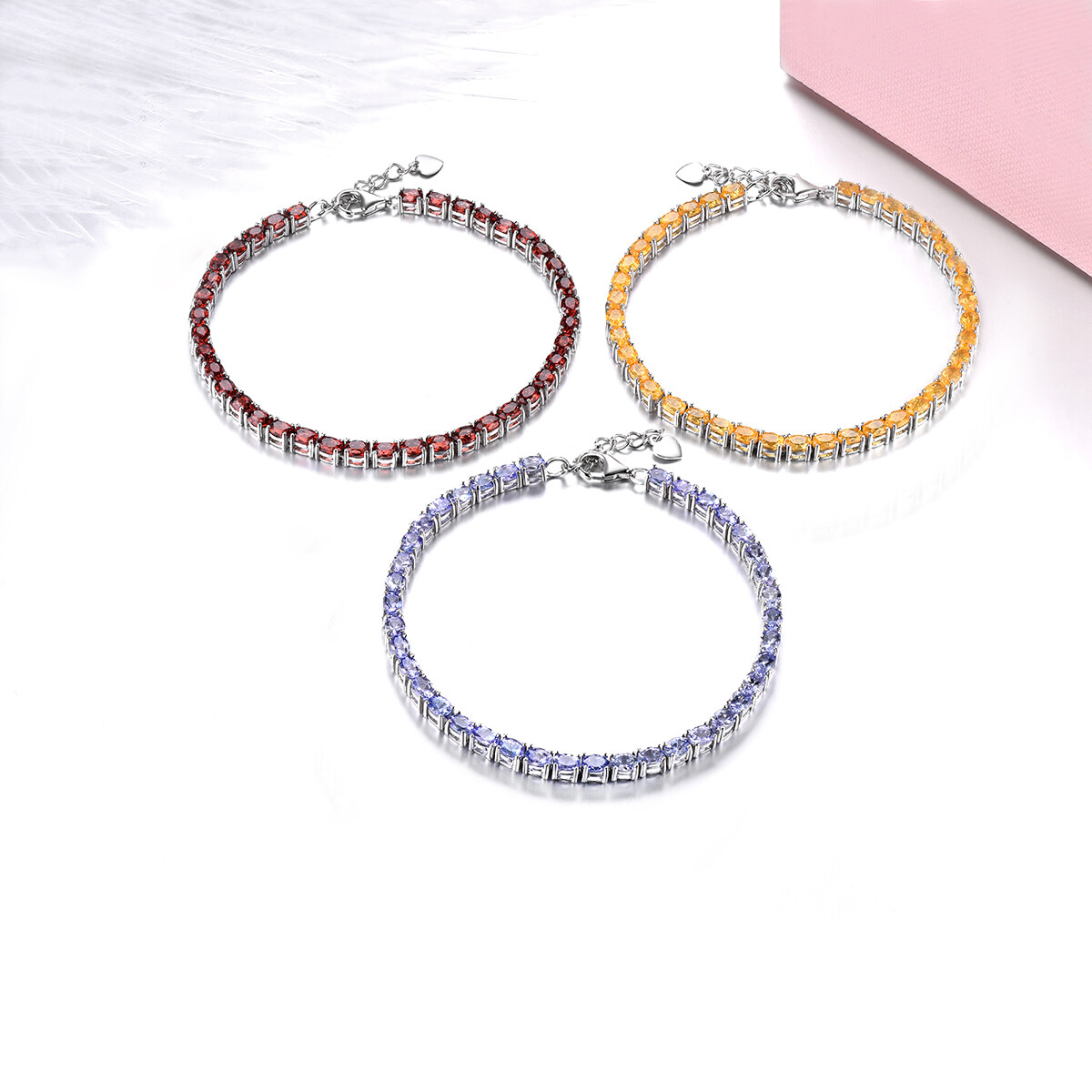 Natural Tanzanite Solid 925 Sterling Silver Bracelet Elegant Gift for Women Mother's Day with Red Garnet and Spessartite Garnet