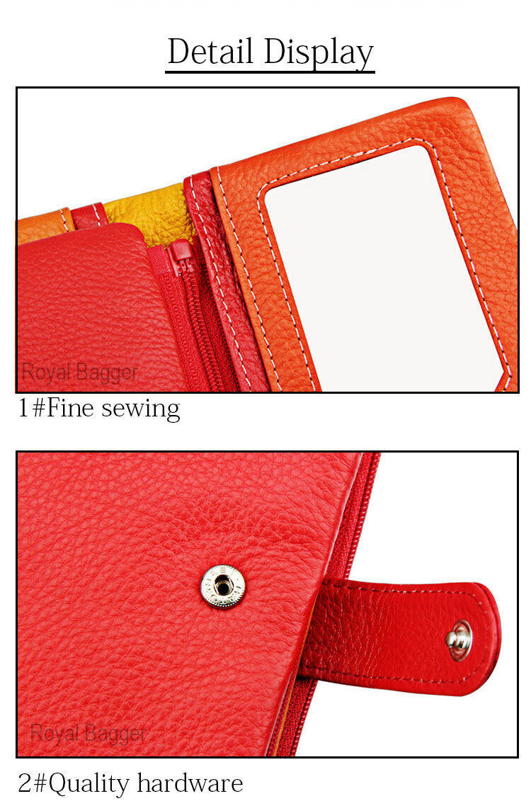 ROYAL BAGGER Purse for Women Genuine Cow Leather Long Wallet Ladies Multifunction Card Holders Wallets Fashion Casual Work Party Clutch Bag