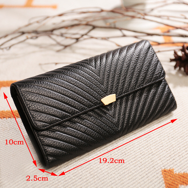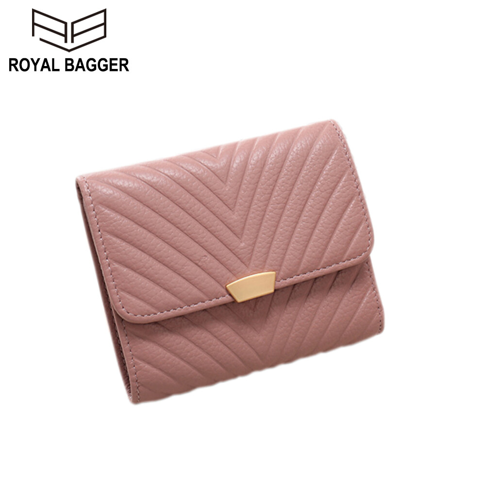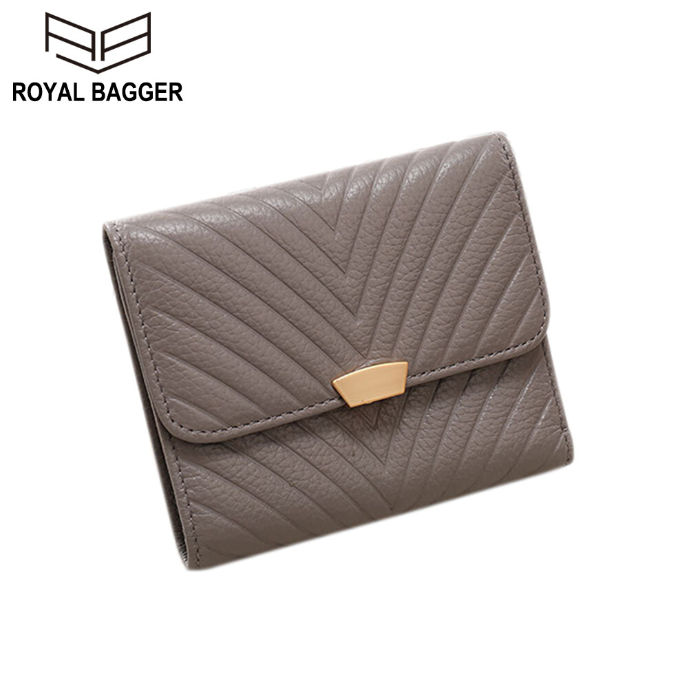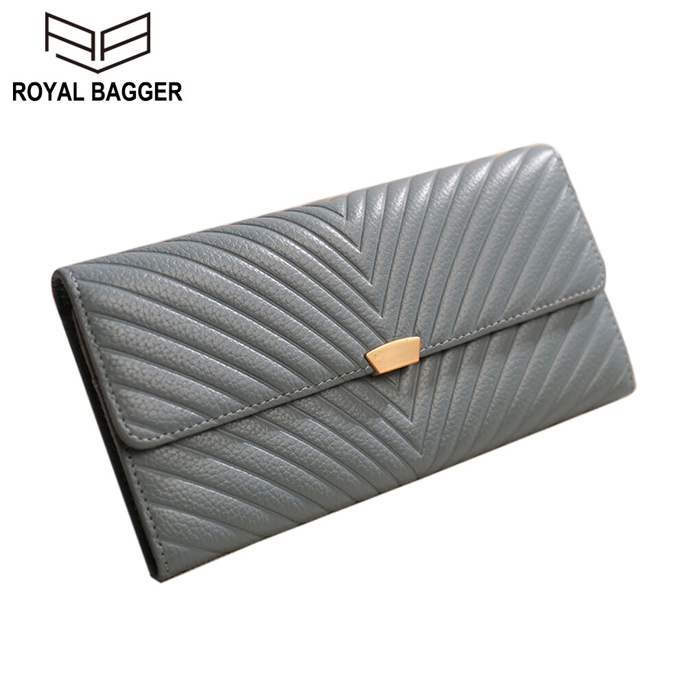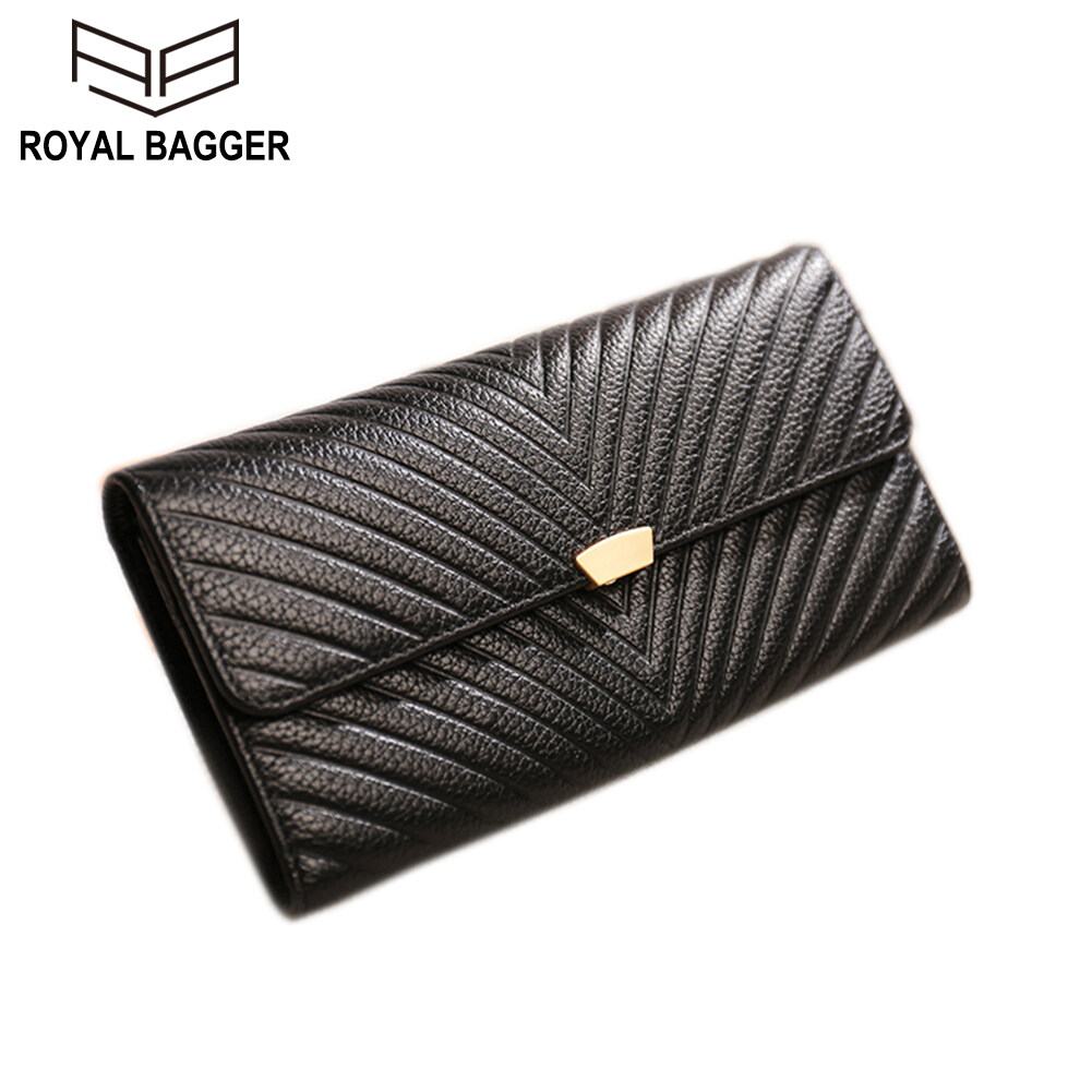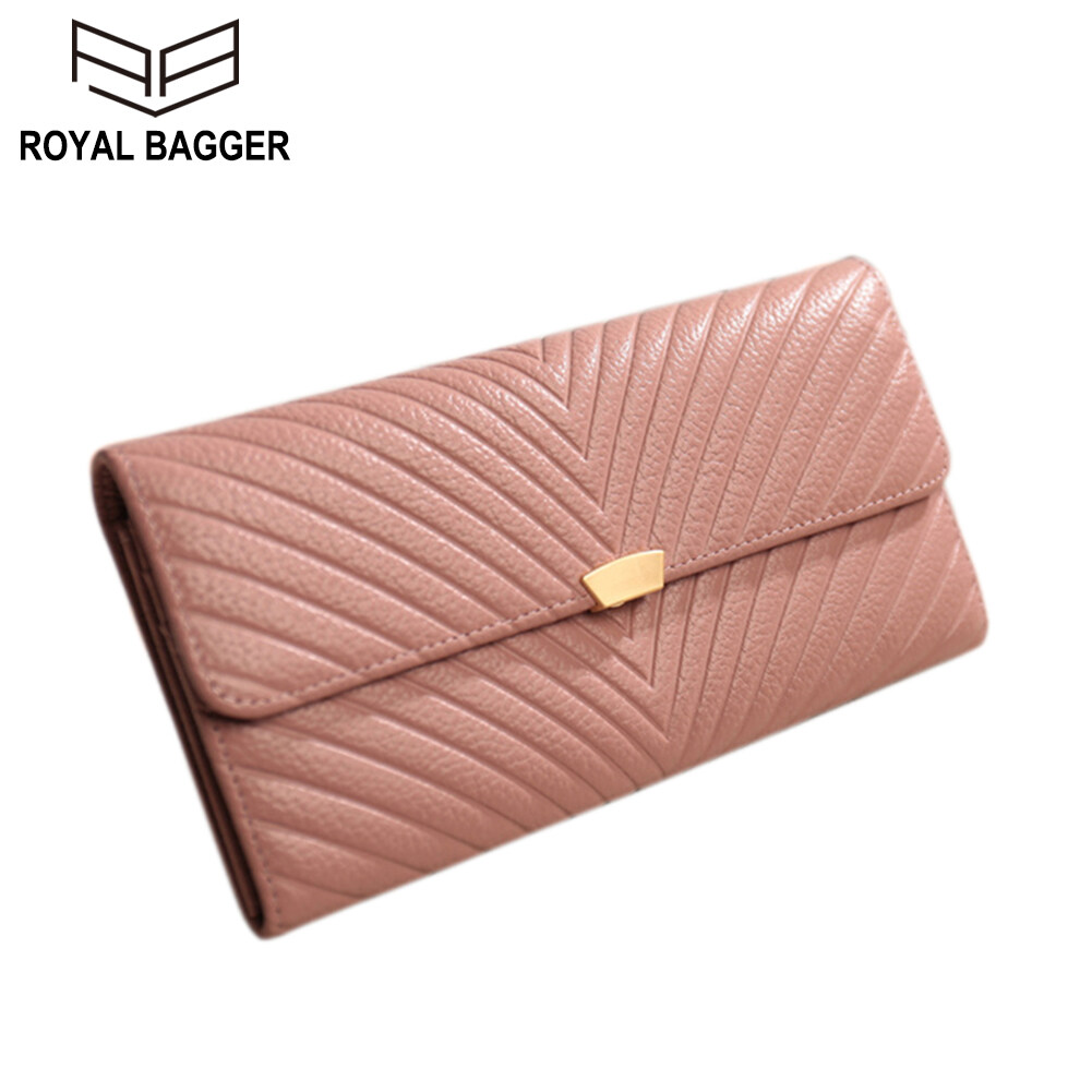 Royal Bagger 100% Genuine Cow Leather Purse Fashion Ladies Wallet Large Capacity Zipper Two Fold Long Clutch Bag Elegant Wallets For Women Girls