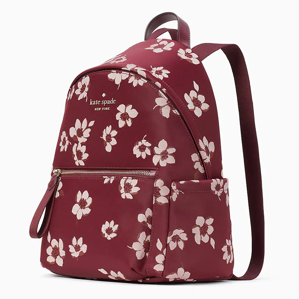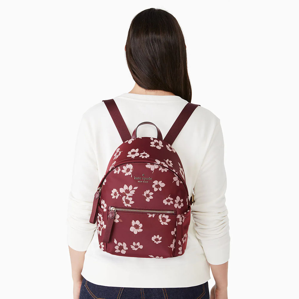 Kate Spade Backpack In Gift Box Medium Backpack Chelsea The Little Better Dancing Blooms Deep Berry Red # K9384