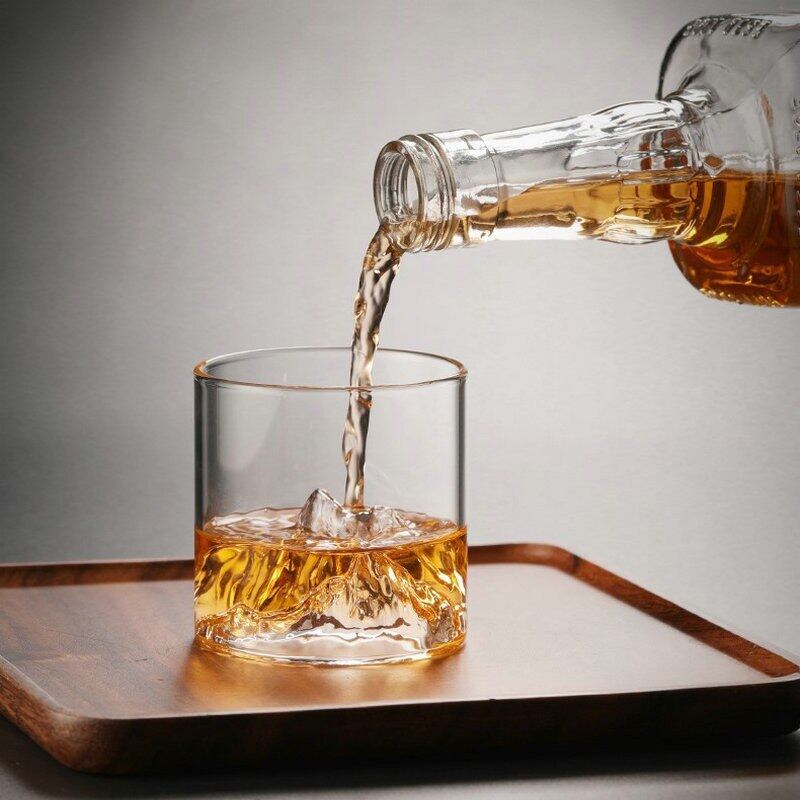 Japan 3D Mountain Whiskey Glass Glacier Old Fashioned Whisky Rock Glasses Whiskey-Glass Wooden Gift Box Vodka Cup Wine Tumbler