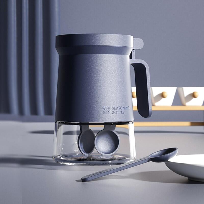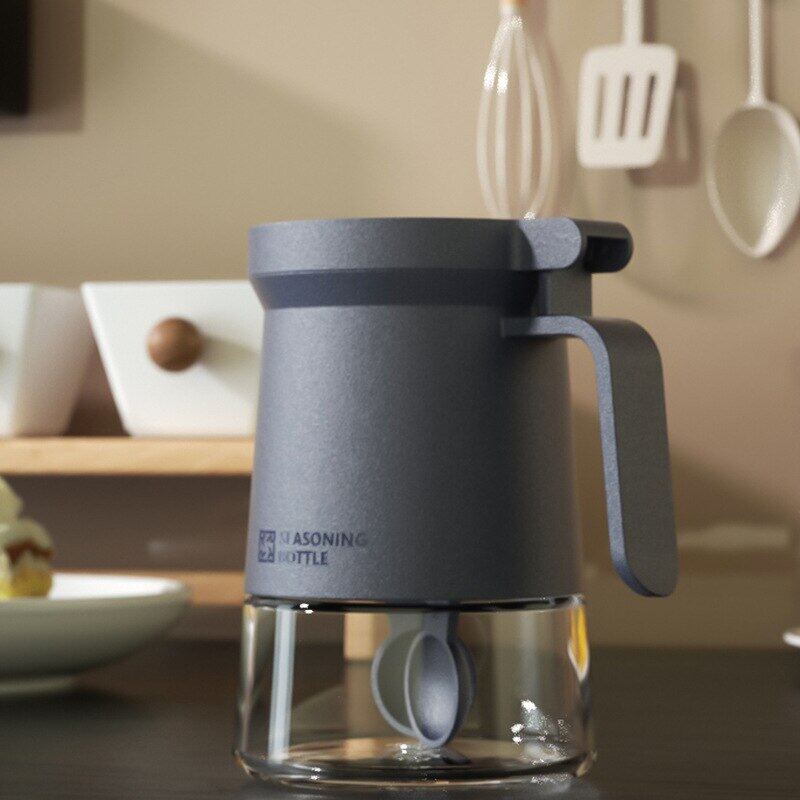 630ML Glass Seasoning Jar Moisture-Proof Seasoning Bottle Kitchen With Spoon Lid All-In-One Storage Box Salt Pepper Shaker Set