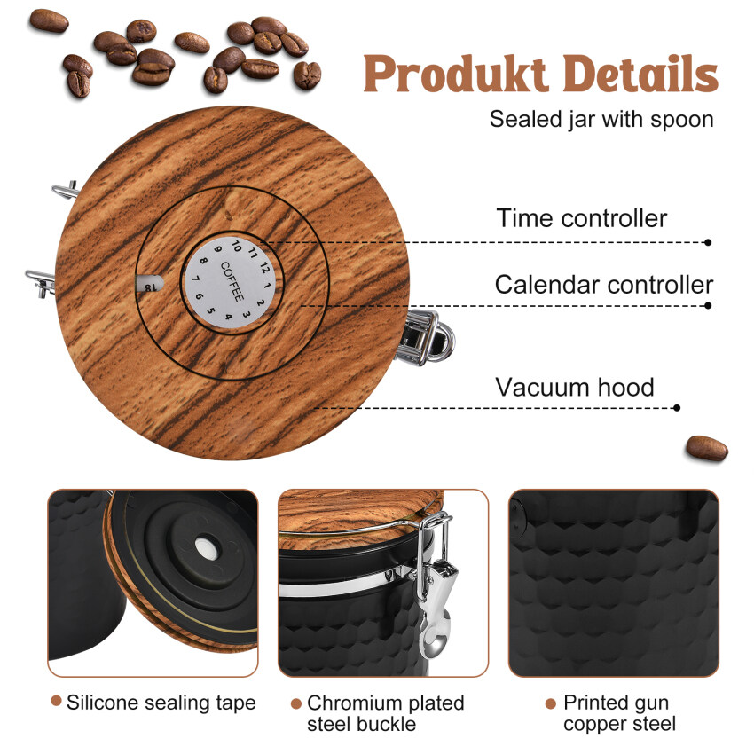 2.Perfect size: with this stainless steel tin with 2800 ml you have the possibility to store 1 kg of coffee beans and can therefore store the complete contents of a coffee packaging in this container